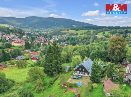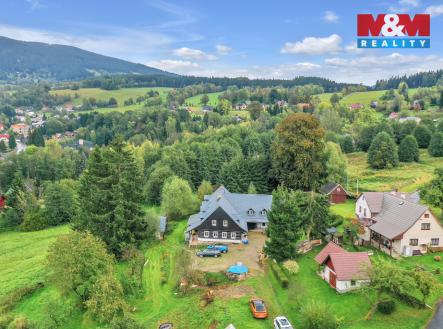 Nabízíme k prodeji penzion na pozemku o rozloze 3077 m² v atraktivní lokalitě Horní Rokytnice nad Jizerou s výhledem na sjezdovky Lysá Hora. Nemovitost je před dokončením, takže nabízí neomezené možnosti přizpůsobit objekt podle svých představ. Dispozice a vybavení: 1x byt 4+kk se dvěma koupelnami, 5x apartmán 2+kk, společenská místnost s barem a krbovými kamny, společná kuchyň, prostory pro saunu, dílnu, dětskou hernu, sklep s klenbami – ideální pro vinárnu nebo wellness. Chata 2+kk. Zahrada o rozloze 2790 m²: parkovací plocha, prostor pro bazén, 3 pergoly s posezením. Technické vybavení: nové rozvody elektřiny, vody, plynu a odpadů, plynový kotel, elektrický kotel, krbová kamna, projekt na napojení na obecní kanalizaci. Součástí prodeje je nové vybavení, postele, matrace, stoly, židle, kuchyňské spotřebiče, koupelnové vybavení. Nemovitost se nachází v turisticky oblíbené oblasti. Je ideální pro zimní i letní sezónu a představuje příležitost pro provozování penzionu, apartmánů.