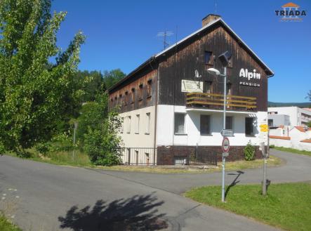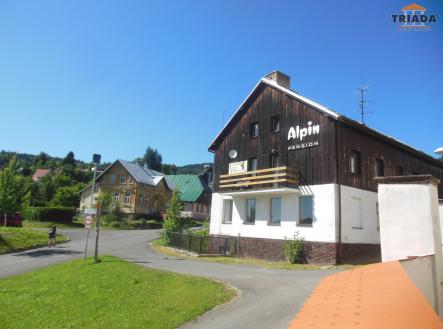 Nabízíme k prodeji penzion Alpin v Rokytnici nad Jizerou. Objekt je zděný a stojí na vlastním pozemku v centru Rokytnice vedle kostela sv. Michala cca 200 m od Ski areálu Studenov. Objekt má čtyři podlaží, která obsahují: suterén - byt správce, kotelna, vinárna s krbem, sklep a sklady. Přízemí - pokoj s příslušenstvím, dělená kuchyň s vývařovnou a přípravnou, lyžárna, bar a velká jídelna. 1. Patro - chodba, sklad prádla, 8 pokojů, WC a sprchy pro muže a ženy. Podkroví - chodba, 9 pokojů, WC a sprchy pro muže a ženy. K objektu náleží zděná garáž, zahrada a parkoviště pro cca 15 osobních aut. Objekt je v dobrém stavebně-technickém stavu na pěkném a lukrativním místě, vhodný k celoročnímu provozu penzionu či menšího hotelu s výbornou dostupností autobusového spojení a kompletní občanskou vybaveností.