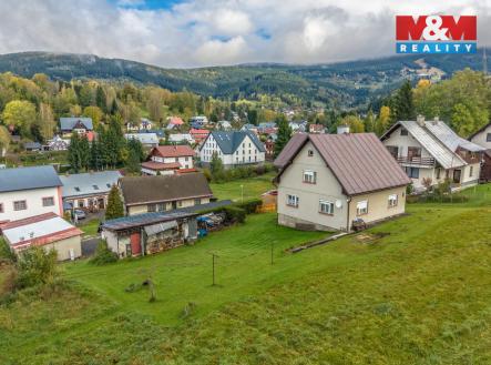 Nabízíme k prodeji rodinný dům v Rokytnice nad Jizerou, části Horní Rokytnice, s pozemky o celkové výměře 887 m2. Nemovitost je v dobrém, udržovaném stavu, ihned obyvatelná, na pěkném klidném místě s výhledem na Lysou horu. V přízemí se nachází kuchyně s krbovými kamny, obývací pokoj, ložnice, koupelna s vanou, samostatný sprchový kout a toaleta. V patře jsou další dva pokoje, kuchyně a samostatná toaleta. Prostornou půdu lze předělat na další obytnou část. Sklep je cca pod třetinou domu a nachází se zde kotelna a sklad na tuhá paliva. Udržovaná zahrada nabízí dostatek soukromí, z části je osázena živým plotem. Pro zahradní nářadí, nábytek či lyže a kola slouží dřevěná kolna. Kdo hledá pěkný dům na hezkém, slunném místě k trvalému bydlení nebo rekreaci, určitě nebude zklamaný. Ihned obyvatelné, dobrá dostupnost, ski bus 100 m od domu.