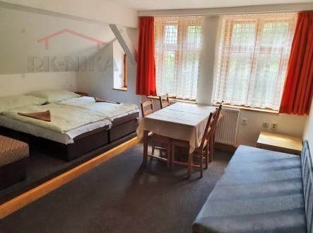 Nabízíme k prodeji zavedený penzion v Rokytnici nad Jizerou, ve vyhledávané krkonošské lokalitě s celoročním využitím. Objekt prošel v 90. letech kompletní rekonstrukcí a následně byl průběžně modernizován. Penzion je celoročně přístupný. Ubytování: 13 pokojů s vlastním sociálním zařízením, celková kapacita cca 40 lůžek. Dispozice: dvoulůžkové pokoje s přistýlkou, mezonetové pokoje, třílůžkové a rodinné pokoje (část s kuchyňkou). Podkroví: v podkrovní části se nacházejí pokoje a zároveň samostatný byt s balkonem, vhodný jako zázemí pro správce, majitele nebo personál. Přízemí: stylová restaurace přístupná i veřejnosti, kuchyně, skladové zázemí, WC a zastřešená letní terasa s posezením (z terasy je také přístup do apartmánů). Suterén: apartmán s vlastním vchodem + zázemí pro hosty (společenské místnosti, herna – kulečník/fotbálek/stolní tenis, sauna), vnitřní posezení s barem a kuchyňkou, prádelna, technická místnost, dílna aj. Součástí je velká garáž (parkování/uložení vybavení) a vlastní parkovací plochy. Technické informace: vytápění kombinované – primárně tepelné čerpadlo (vzduch) + elektrokotel. V roce 2022 byly instalovány fotovoltaické panely o celkovém instalovaném výkonu 10,5 kWp. Voda z obecního vodovodu; možnost obnovit vlastní studnu (před objektem). Ohřev vody elektrické bojlery. Odpad do městské kanalizace. Pozemky: celková výměra 2 452 m². Přestože je objekt u hlavní komunikace a v zastavěné části obce, nabízí i klidné posezení s pergolou ve dvorní části a lesní pozemek přístupný přes lávku nad potokem. Velkou výhodou je zastávka skibusu v sousedství. Penzion je díky své poloze ideální pro celoroční rekreaci. V zimě oceníte především výjimečné lyžařské podmínky – v okolí se nachází jedno z nejlepších horských středisek v České republice s možností využití dlouhých sjezdových tratí i běžkařských tras. Oblíbenou volbou je například běžecká magistrála vedoucí od Harrachova přes Labskou boudu, Zlaté návrší a Mísečky až do Špindlerova Mlýna. V jarních, letních a podzimních měsících je v okolí nepřeberné množství aktivit – turistika, cyklovýlety, adrenalinové sporty, houbaření a další možnosti vyžití. Kombinace těchto aktivit a samotného domu vytváří skvělé zázemí pro odpočinek i aktivní dovolenou. Hosté mohou parkovat na soukromém parkovišti přímo před budovou penzionu (10-15 míst).