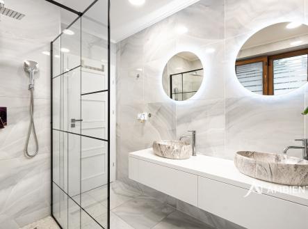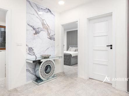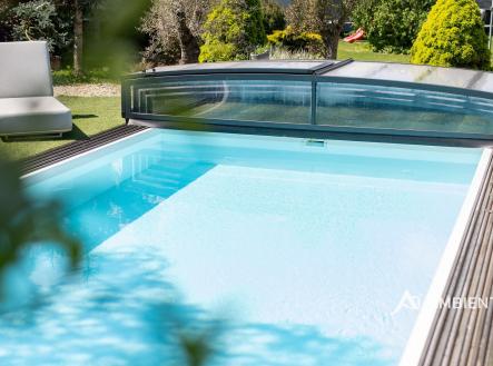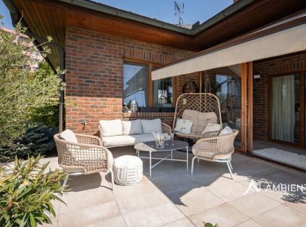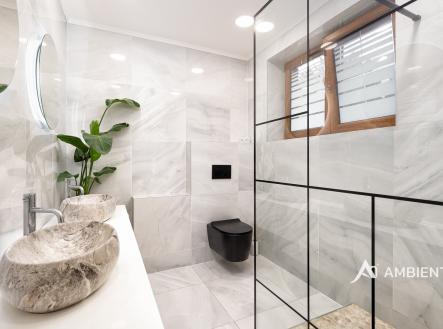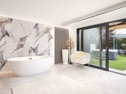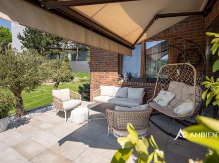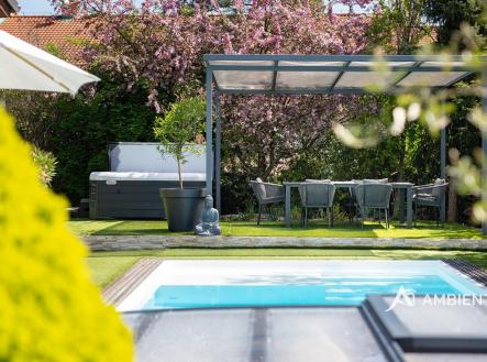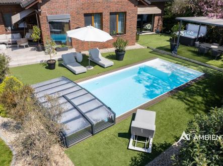 AMBIENTEN VIP exkluzivně nabízí prodej moderního samostatně stojícího rodinného domu 5+kk se zahradou, možností parkování tří vozů za branou na vlastním pozemku. Nemovitost se nachází v obci, ze které je výborná dostupnost do Brna a nabídne vám veškerou občanskou vybavenost. Celková plocha pozemku je 757 m² a užitná plocha domu 180 m². Tato vkusně a moderně zařízená vilka po rekonstrukci vás okouzlí nejen interiérem, ale i prostornou zahradou skýtající různé formy využití. Vstup do domu je přes prosklené zádveří, ze kterého vstoupíte do vzdušné světlé předsíně, která je obložená moderními panely s mramorovou texturou s velkorysým úložným prostorem a vstupem do téměř všech místností domu. Po levé straně naleznete průchod do prostorné šatny s ostrůvkem, přes kterou se prochází do luxusní ložnice. Ta má přímý výstup k bazénu a vířivce. Dominantou ložnice je na zakázku vyrobené dvojlůžko, samostatně stojící vana, umyvadlo a projektor s plátnem. Přímo z postele ložnice máte nádherný pohled do okrasné zahrady. Plátno projektoru lze využít i jako roletu. Otevřená dispozice obývacího pokoje, kuchyně a jídelny je příjemným prostor pro vaši rodinu. Kuchyňská linka je od firmy Mikyska. V rámci obývacího pokoje můžete spočinout na značkové sedačce, využít jídelní stůl s designovými židlemi či připravit pro rodinu výborné menu za pomoci moderních spotřebičů, většinou značky Miele. Za zmínku stojí varná část kuchyně nabízející Combi set pro pánev Wok a přípravu čerstvých paniny. Při přípravě pokrmů, stejně jako při relaxaci na sedačce můžete pozorovat život na zahradě, která obklopuje celý dům. Z obývací části je vstup na prostornou terasu až ke krytému bazénu se slanou vodou a protiproudem. Odpočinkovou zónu vkusně doplňuje vzrostlá středomořská vegetace v elegantních květináčích. Pokud se vydáte z předsíně vpravo, zavítáte do jednoho z dětských pokojů. V budoucnosti lze i tento pokoj propojit s terasou a přímým vstupem na zahradu. Vedle dětského pokoje se nachází technická místnost s pračkou a sušičkou a dále vstup do koupelny s toaletou a sprchovým koutem a dvěma umyvadly. Vytápění domu je přes plynový kotel Baxi. V přízemí domu je podlahové vytápění. Ve druhém patře domu se nachází dětský pokoj, který majitelka vkusně vyzdobila dětskou tapetou a vytvořila pohádkové království pro vaše děti. Celá zahrada je oplocená dřevěným plotem. Nabídne vám prostor, jak pro váš odpočinek, tak lze i část zahrady využít jako druhé stavební místo. Na pozemku máte soukromí, jelikož je zeleň v zahradě poměrně vzrostlá. Na zahradě se nachází domek na nářadí a herní plocha pro děti. Zdivo domu je cihla s obkladem Klinker. Okna jsou plastová s izolačním dvojsklem. Rodinný dům prošel nákladnou rekonstrukcí, která se uskutečnila v roce 2021 a 2024. Pokud hledáte nadstandardně vybavený dům s výbornou dojezdovou vzdáleností 25 minut do centra Brna a s veškerou občanskou vybaveností (škola, školka, pošta úřad, restaurace nákupní zóna), neváhejte nás kontaktovat a přijďte se nechat okouzlit tímto překrásným rodinným sídlem.