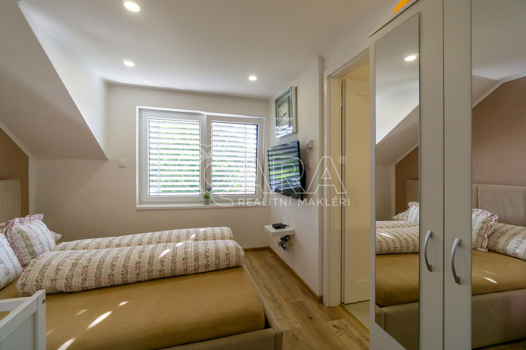 Nabízíme k prodeji exkluzivní luxusní nemovitost v obci Rostoklaty, části obce Nová Ves II, okres Kolín. Tato novostavba rodinného domu z roku 2022 nabízí zážitek z bydlení v prostředí plném elegance a komfortu. Dům je řadový, zděný a patrový. S celkovou užitnou plochou 94m² a dispozicí 3 kk poskytuje dostatek prostoru pro pohodlné bydlení. V přízemí domu je situována vstupní chodba, technická místnost, toaleta, šatna a prostorná kuchyně spojená s obývacím pokojem. V patře se nachází chodba, ze které se vstupuje do ložnice s šatnou a dětského pokoje, prostorné koupelny s rohovou vanou, bidetem a toaletou. Zdobné schodiště spojuje obě patra. Pohodlná terasa na předzahrádce poskytuje relaxační prostor pro odpočinek v klidném prostředí. Na zahrádce nechybí ani menší zahradní domek na uskladnění kol a sekačky. V kupní ceně je zahrnuto i veškeré vybavení domu, včetně nábytku a krásné kuchyňské linky jejíž součástí jsou vestavěné spotřebiče. Dům je zděný, fasáda je zateplena 10 cm polystyrenu, vytápění je elektrickým kotlem - podlahové topení, nechybí ani příprava na tepel. čerpadlo. V oknech jsou sítě proti hmyzu a venkovní rolety. Střecha je pokryta taškami zn. Bramac. Interiér je promyšlený do nejmenších detailů s důrazem na kvalitu a design. Tento rodinný dům se nachází v klidné lokalitě s vynikající dostupností veškeré občanské vybavenosti. Dostupná doprava vlakem a autobusem zajišťuje snadnou komunikaci se sousedními obcemi a městy. Dvě parkovací místa před domem zaručují pohodlné parkování pro obyvatele i hosty. Nemovitost je napojena na veškeré inženýrské sítě, včetně kanalizace, plynovodu a internetu. Tato luxusní nemovitost splňuje veškeré nároky na moderní a pohodlné bydlení pro ty, kteří hledají klid a soukromí v klidnější obci. V případě zájmu o prohlídku nás neváhejte kontaktovat.