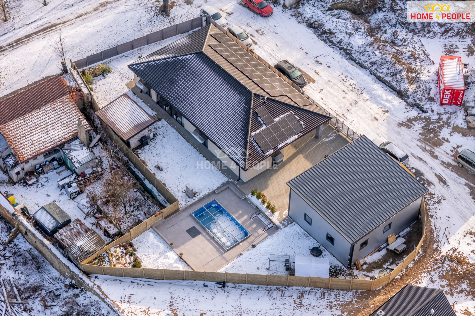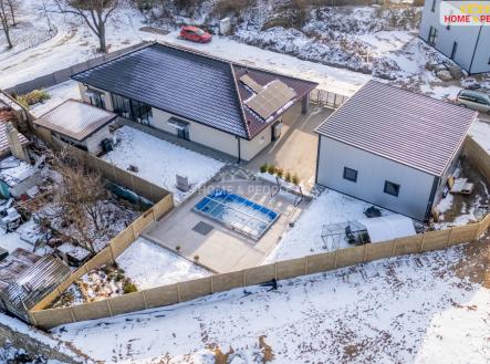 Dovolte mi Vám ukázat nemovitost ke koupi, která může vyplnit sen mnohým z Vás. Novostavba kolaudovaná v roce 2024, moderní design a velmi kvalitně vybavený rodinný dům v obci Nová Ves II – Rostoklaty, který nejen splňuje, ale i překračuje požadavky současného bydlení, nabízí vysoký komfort, soukromí a energetickou efektivitu. Prostorná a bezbariérová stavba v dispozici 4+kk a výměře 166 m² vyniká promyšleným záměrem, kvalitními materiály i zpracováním a využitím chytrých technologií, které zajišťují pohodlný a úsporný provoz domácnosti. Vzdušné a světlé interiéry s dostatkem místa zahrnují hlavní pokoj s kuchyní a komorou, 2 pokoje, prosklenou zimní zahradu, koupelnu, šatnu, technickou místnost. Je zde i varianta přístavby pokoje. Topení podlahové, v každém pokoji i klimatizace. Dům stojí na pozemku o výměře 1 000 m², který nabízí dostatek prostoru pro příjemné žití, relaxaci, ale i třeba pracovní využití. K venkovnímu zázemí patří: bazén pro osvěžení a zahradní jezírko, které dotváří klidnou atmosféru zahrady, venkovní kuchyně pro kulinářské zážitky a ideálně i pro posezení s rodinou a přáteli, prostorná garážová hala o velikosti 60 m², 2x el. vrata na dálkové ovládání, klimatizace o výkonu 5 kW, zavedena voda, odpady. vhodná nejen pro parkování, ale i jako dílna či úložný prostor, kryté parkování pro 2 vozy, další 4 na dvoře a parkovat je možno i před domem. Nemovitost je vybavena fotovoltaickou elektrárnou o výkonu 17,55 kW s akumulací 22 kWh, která zajišťuje vysokou míru energetické soběstačnosti a výrazně snižuje závislost na externích dodávkách energií. Přebytky el. energie je možné prodávat v sousedství. Vytápění tepelným čerpadlem, voda z vlastní vrtané studny a kanalizace obecní. Lokalita nabízí klidné bydlení, 2 km do Českého Brodu, kde najdeme plnou občanskou vybavenost - školky, školy, obchody, restaurace... vlak s rychlou dostupností do Prahy (17 km) či Kolína (25 km), ale i vozem či busem velmi dobré spojení. V blízkém okolí se nachází dosti příležitostí trávit volný čas v zeleni - lesích, na cyklostezkách či procházkách, u rybníků koupání či rybaření, návštěvy památek. Pro začátek si neváhejte projít fotky a připojenou virtuální 3D prohlídku a následně si to pojďme projít spolu, těším se na Vás. Daniel Martinů. Ev. číslo: 32083.