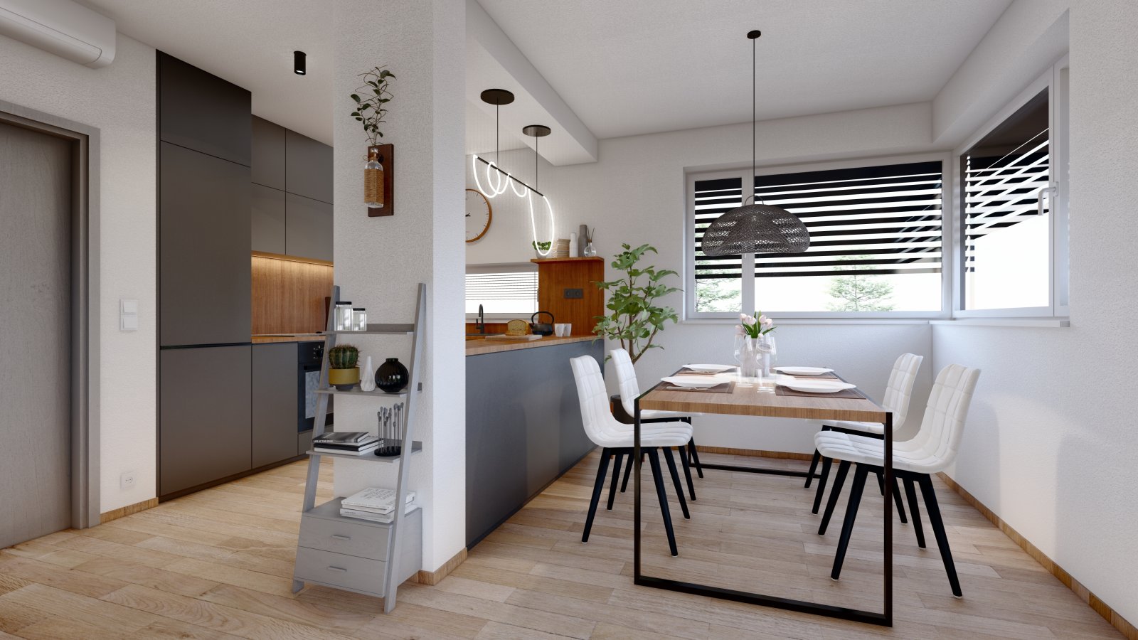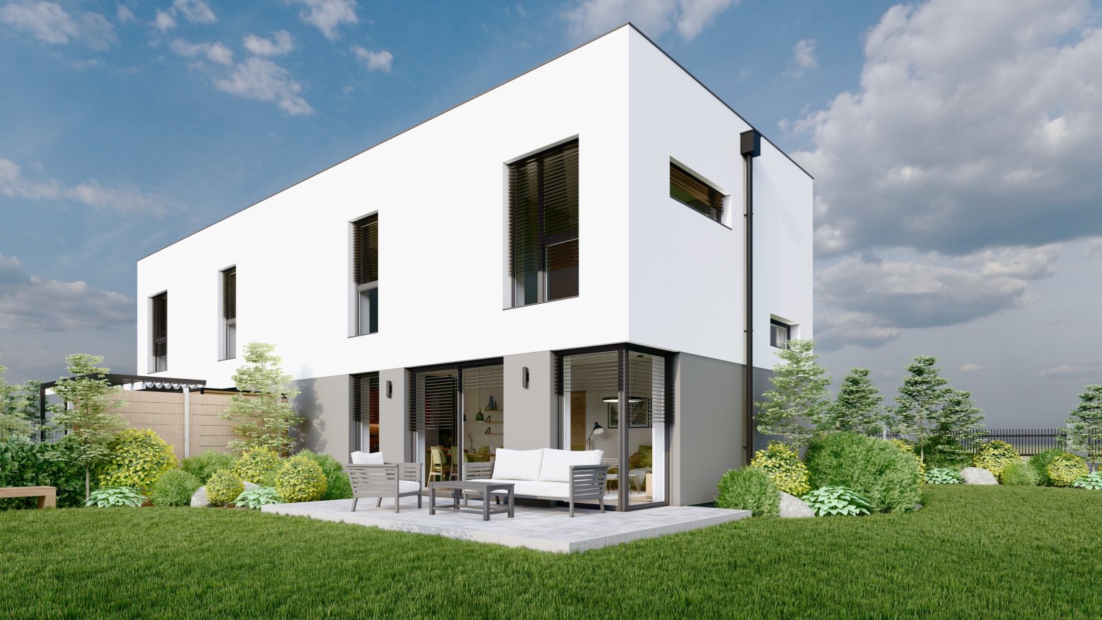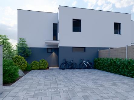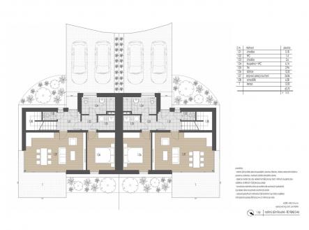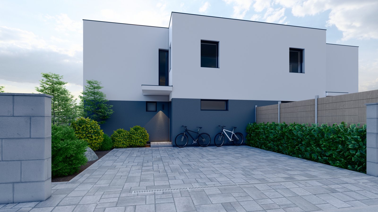 Rezidence "Zlaté Roudné" - 3. ETAPA - další domy ve výstavbě. Nabízíme prodej novostavby rodinného domu "na klíč" o dispozici 5+kk, patrový dvojdům - č.98A s pozemkem 489m2 (parc.č.480/141) a č. 98B s pozemkem 458m2 (parc. č. 480/98). Dům se nachází v ulici Ječná v Roudném na okraji Č. Budějovic. Obytná plocha domu je 113m2 + terasa 12m2, parkovací stání pro 2 auta. Dispozice: 1.NP - vstupní chodba (7,78m2), koupelna se sprch. koutem, umyvadlem a WC (6,14m2), WC (1,4m2), technická místnost (2,94m2), pokoj (12,20m2), obývací pokoj s kuchyňským koutem (26,86m2), chodba se schodištěm (6,38). Z obýváku je vstup na terasu o výměře 12m2. Plocha parkovacího stání pro 2 auta 36m2. 2.NP - chodba (8,40m2), 3 ložnice (12,20m2, 11,10m2, 8,45m2), koupelna s vanou, sprch. koutem, umyvadlem, WC (7m2), samostatné WC (2m2). Na přání zákazníka je možné dodělat terasu v patře - pochozí dlažba, zábradlí (doplatek cca 70.000,- Kč). Kolaudace a předání 4/2027. Domy jsou situovány v klidné části výstavby. Zahrady domů jsou orientovány na jihozápad. Zákazník nyní může sám volit konečnou podobu svého domu výběrem dle vlastního přání (podlahových krytin, vnitřních dveří, obkladů, dlažeb a sanity koupelny), standardy předložíme zájemci. Zpevněná plocha - terasa ze zámkové dlažby Best Beleza, vchod a parking ze zámkové dlažby Best Klasik, plot - podhrabový obrubník+pletivo (180-200cm), systémová branka cca 1m + 3m brána dvoukřídlá, okapový chodník včetně oblázků, příprava na venkovní žaluzie (kastlíky). Vybavenost: konstrukce Porotherm 240–300 obvod, vnitřní 200, příčky 150, zateplovací systém 180 mm polystyren, plastová okna a dveře – izolační trojsklo, veškeré vnitřní rozvody – elektřina, plyn, voda, topení, plynový kotel BAXI se zásobníkem vody, v celém domě podlahové vytápění, podlahy vinyl a dlažba, dveře s obložkami, koupelny se sprch. koutem, vanou, umyvadlem a WC, příprava na fotovoltaiku. “REZIDENCE ZLATÉ ROUDNÉ“ se nachází v obci Roudné asi 3 km jižně od Českých Budějovic. Roudné bylo založeno při levém břehu Malše, navazuje na městskou část Rožnov. Vybavenost obce Roudné: mateřská škola, hřiště, restaurace, knihovna, kulturní sál, požární zbrojnice, sběrný dvůr, v obci fungují spolky a sportovní kluby. Navazujeme na již několikátý úspěšně realizovaný a velmi žádaný projekt investora, který je jednička ve svém oboru. Velký zřetel je kladen na energetickou úspornost domu, aby budoucí majitel měl co nejnižší náklady na provoz domu (PENB – D). Pozemky jsou přístupné po obecní komunikaci, výstavba domů probíhá na zasíťovaném ZTV – plyn, elektřina, vodovod, kanalizace, Starnet – optický kabel. Hypoteční servis zdarma (naši hypoteční poradci řeší úvěry u všech bankovních domů za nejlepších podmínek na trhu).