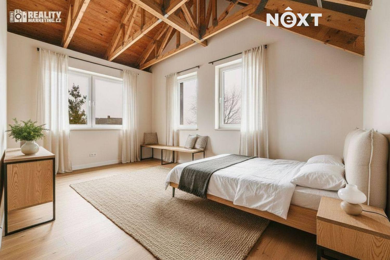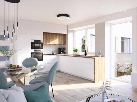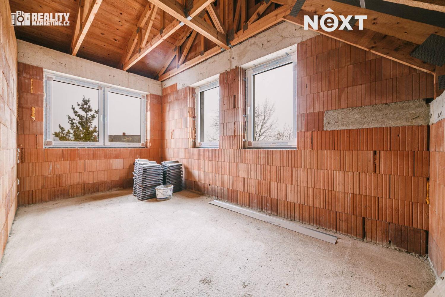 Nabízíme Vám ke koupi byt, který je v tříbytovém rodinném domě. INZEROVANÁ CENA JE ZA KOMPLETNĚ DOKONČENÝ BYT ( bez kuchyňské linky) CENA ZAHRNUJE PROVIZI RK I PRÁVNÍ SERVIS. Byt se nachází v atraktivní lokalitě města Rousínov, jen 20 minut jízdy autem od centra Brna a pouhých 10 minut od Vyškova. Veřejná doprava zajišťuje výborné spojení, díky čemuž je cesta do Brna otázkou 30 minut. Klidná lokalita s veškerou občanskou vybaveností. V ceně jsou dvě soukromá parkovací stání. Interiér bytu je navržen s důrazem na praktičnost a vzdušnost, což se odráží v promyšlené dispozici. Přízemí bytu Vás přivítá prostornou předsíní a elegantním schodištěm. Pod schodištěm se nachází technická místnost. Dále je v přízemí koupelna s WC a sprchovým koutem. Dominantou přízemí je otevřený obytný prostor s kuchyňským koutem. Tento otevřený prostor přes 30 m2 m² je ideální pro rodinné chvíle i setkávání s přáteli. Z obývacího pokoje je pak výstup na terasu 18m2 a privátní zahradu 108m2. Přízemí dále doplňuje pokoj, který můžete využít jako pracovnu nebo hostinský pokoj podle svých potřeb. Podkroví je určeno pro klid a soukromí celé rodiny. Najdete zde prostornou chodbu, která propojuje 3 samostatné neprůchozí pokoje a koupelnu s vanou a wc. Nejmenší pokoj má 12,9 m2 a největší má 16.6 m2. Byt bude dokončen v dubnu 2026, před dokončením se předpokládá personalizace podle kupujícího tzn. kupující si vybírá: podlahy,obklady,dlažby,zařizovací předměty, vnitřní dveře a výmalbu.Energetická náročnost budovy je vedena ve tříde C-úsporná. V ceně 8 490 000,- je již započteno dokončení bytu. Tento byt není jen místem k bydlení – je to domov, kde si můžete splnit své sny o ideálním životě. Kontaktujte nás a přijďte se přesvědčit na vlastní oči. Pro komunikaci uvádějte evidenční číslo zakázky N114639.