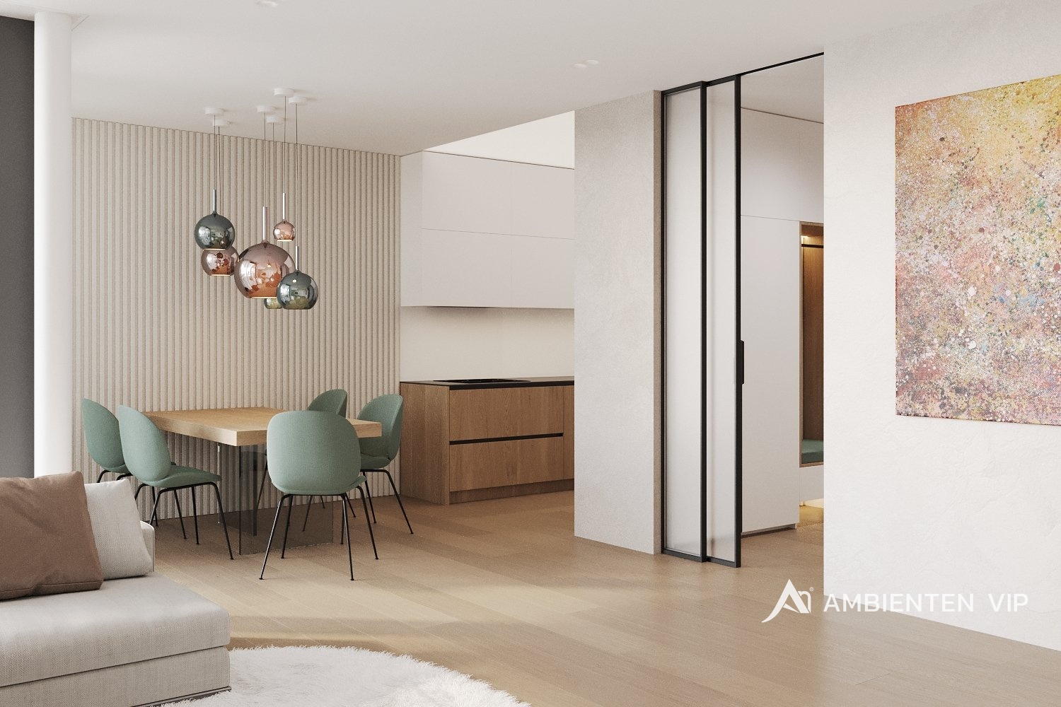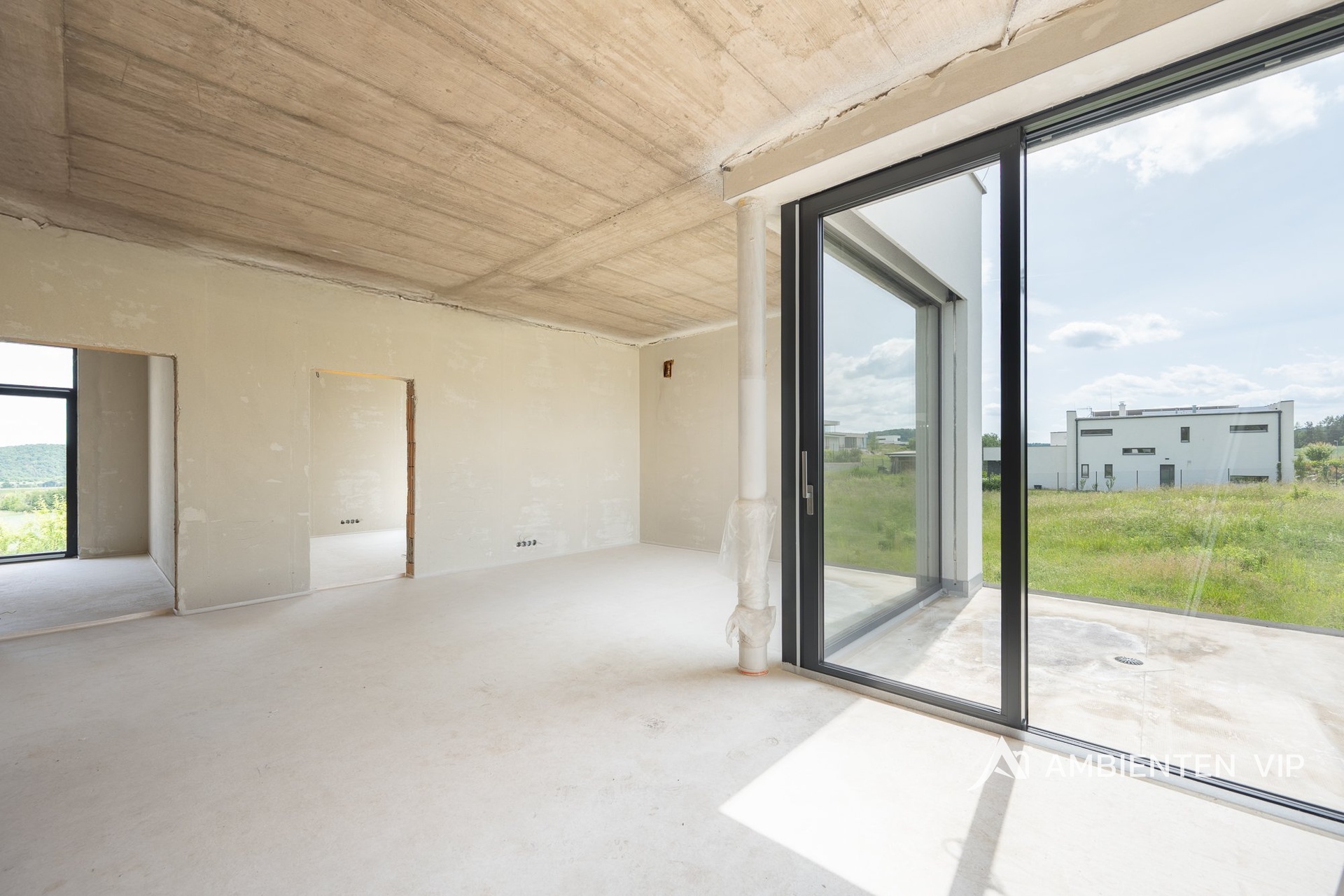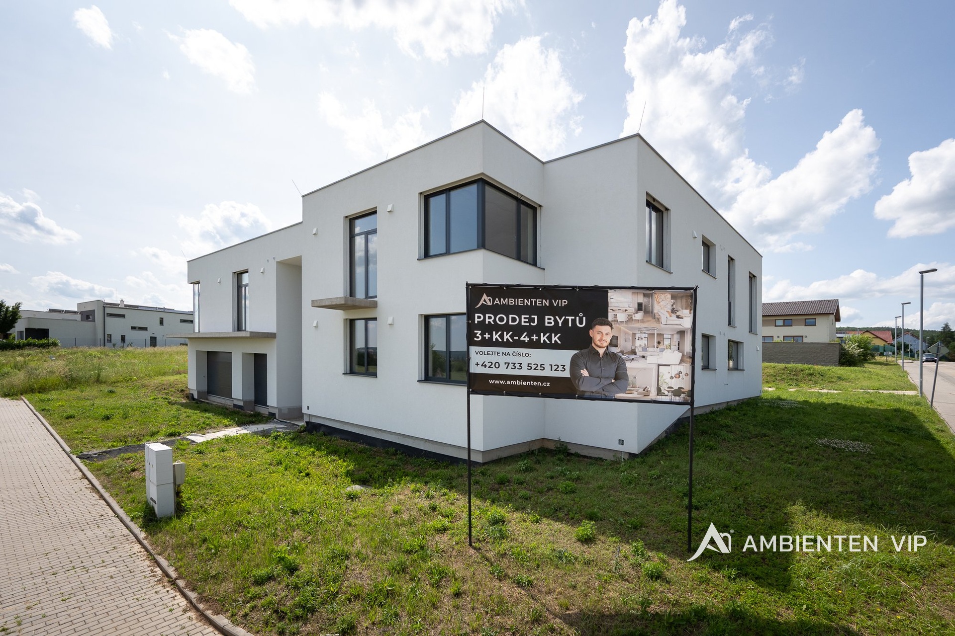 AMBIENTEN VIP si Vám dovoluje nabídnout ve výhradním zastoupení majitele jedinečný byt o dispozici 3+kk se dvěma terasami v nově postavené luxusní rezidenci nacházející se v obci Rozdrojovice. Celková užitná plocha bytu je 85,70 m² a nachází se v 2. nadzemním podlaží. Součástí prodejní ceny jsou také 2 garážové stání. Byt disponuje vstupní halou (5,94 m²), prostorným obývacím pokojem (21,32 m²), kuchyňským koutem s jídelnou (16,24 m²), dvěma ložnicemi (18,80 m² a 17,60 m²), koupelnou s vanou a společném WC (5,80 m²), terasou (8,10 m²) a terasou s přístupem přes společné prostory na střeše budovy (37,8 m²) - lze využít i například pro vířivku. Při výstavbě rezidence byly použity nejkvalitnější materiály. V bytě jsou hliníková okna s izolačními trojskly. Podlahy v bytě jsou vinylové lepené vhodné pro podlahové vytápění. Vytápění v bytě je řešeno přes podlahové vytápění elektrické s využití uhlíkové technologie Heatflow. Ohřev vody je řešen přes elektrický zásobník. Součástí jsou i klimatizační jednotky pro chlazení (Samsung) v bytové jednotce a lokální rekuperační jednotky. Celý byt je také vybaven bezfalcovými dveřmi. Okna jsou hliníková s izolačním trojsklem a pro komfort můžete také využít zabudované venkovní žaluzie. Koupelna má keramické obklady a dlažby. Sanita a zařizovací předměty jsou dodány od společností: RAVAK (vodovodní baterie), HANSGROHE (umyvadla), RAVAK (vana), HANSGROHE (vanové a sprchovací baterie), ROLTECHNIK (sprchová zástěna) a GEBERIT (pod omítkový WC modul). V bytě se nachází příprava pro kuchyni (instalace pro dřez, myčku, digestoř a rozvody pro spotřebiče), pračku, sušičku. Byt je vybaven inteligentní domácností Loxone. Garáž je určena pro šest vozidel, s třemi elektro dobíjecími stanicemi a s jedním technickým umyvadlem. Vjezd sekčními garážovými vraty, které jsou na dálkové ovládání, popřípadě ovládání aplikací (Loxone). Z garáže je propojení vnitřními dveřmi do společných prostor domu. Prostor garáže je temperován elektrickým podlahovým vytápěním Heatflow. Rezidence se nachází v Rozdrojovicích, malebné obci v těsné blízkosti Brněnské přehrady. Tato lokalita představuje ideální spojení klidného bydlení v přírodě s rychlou dostupností města. Rozdrojovice jsou perfektním místem pro ty, kteří chtějí žít v harmonickém prostředí obklopeném lesy, ale zároveň mít veškerou občanskou vybavenost na dosah. Brněnská přehrada, vzdálená jen pár minut, nabízí široké možnosti relaxace, vodních sportů i příjemných procházek. V okolí se nachází také moderní wellness centra, která poskytují dokonalé místo pro odpočinek a regeneraci. Díky výborné dopravní dostupnosti se dostanete do centra Brna za pouhých 15 minut autem, což činí tuto lokalitu atraktivní i pro ty, kteří pracují ve městě, ale po pracovním dni touží po klidném zázemí. Rozdrojovice jsou skvělou volbou pro rodinné bydlení i aktivní životní styl. V blízkosti se nacházejí školy, školky, restaurace a sportovní zařízení. Pokud hledáte komfortní domov v krásném prostředí s výhodami města na dosah, tato nabídka je pro vás ideální. V případě zájmu o více informací, nebo o prohlídku neváhejte se nás kontaktovat!
