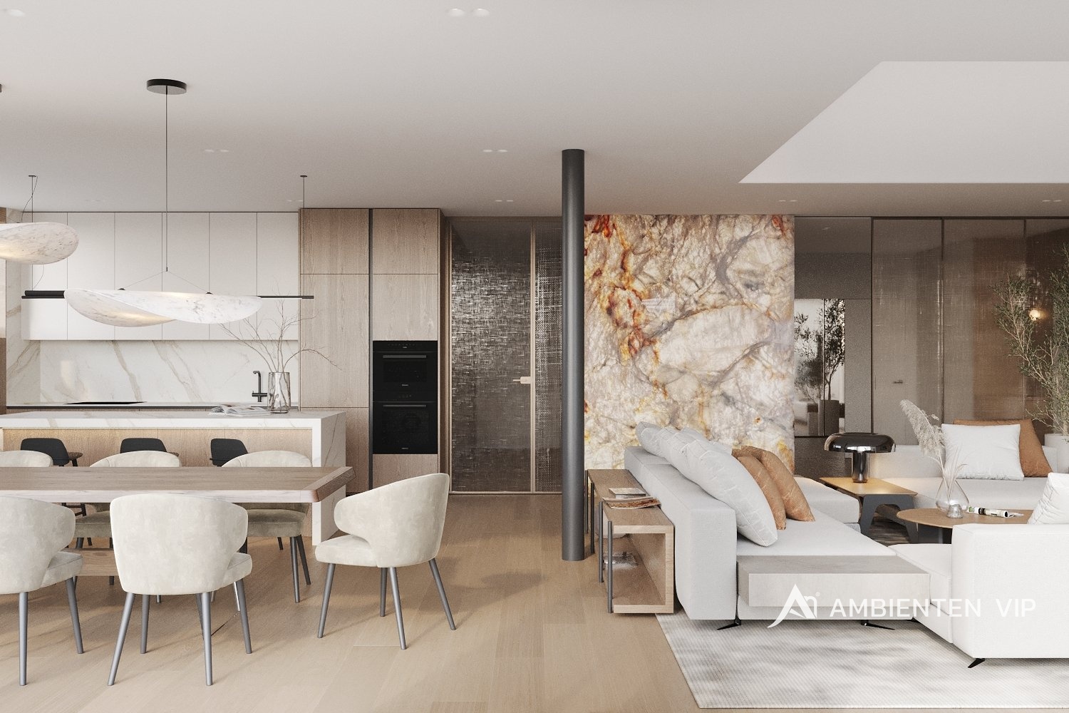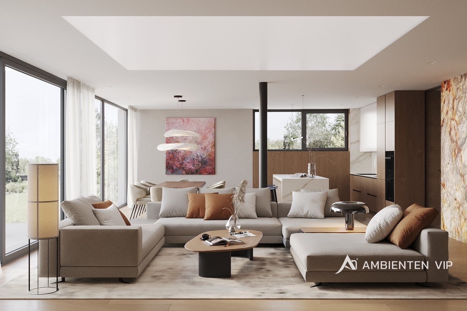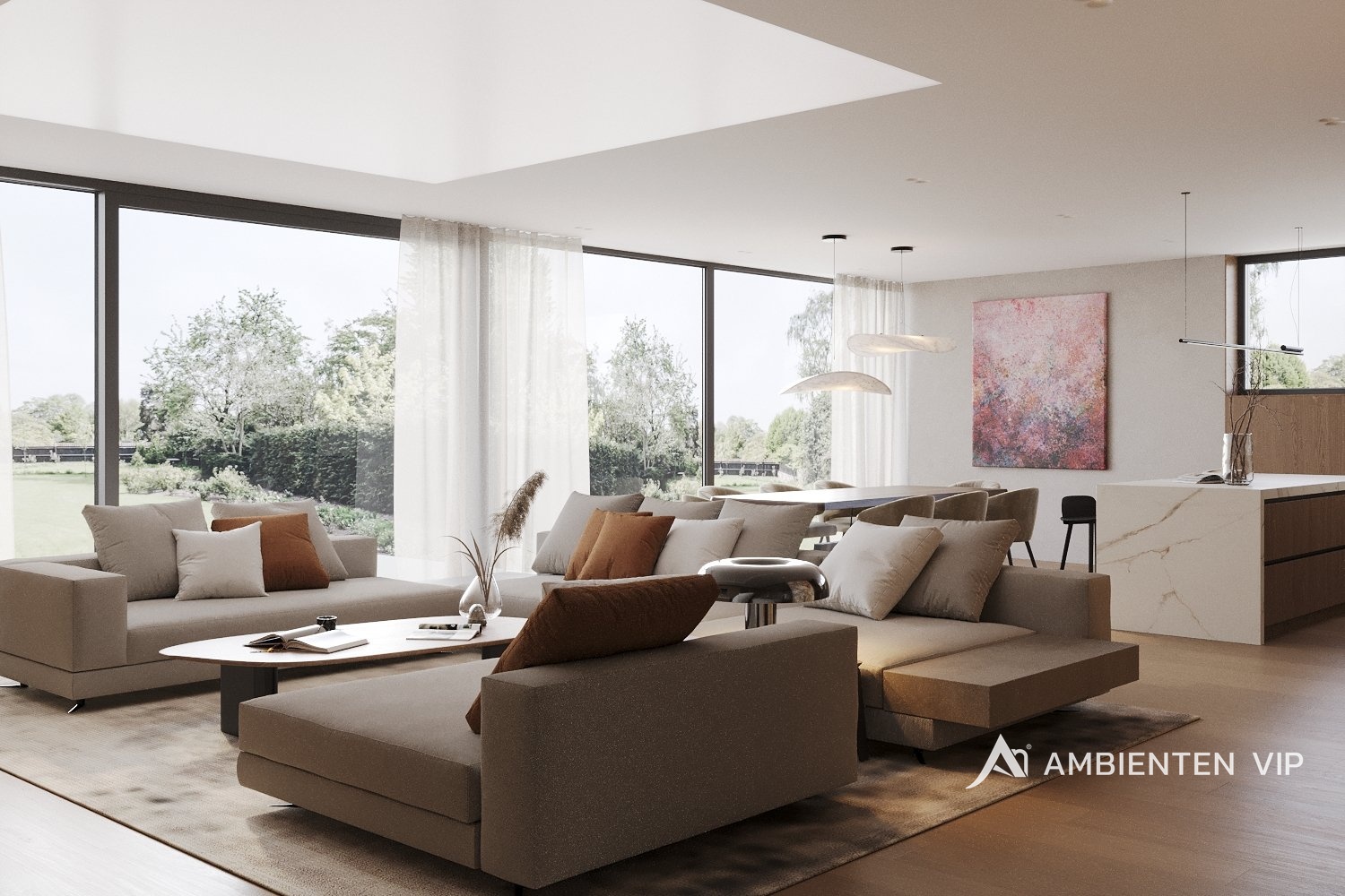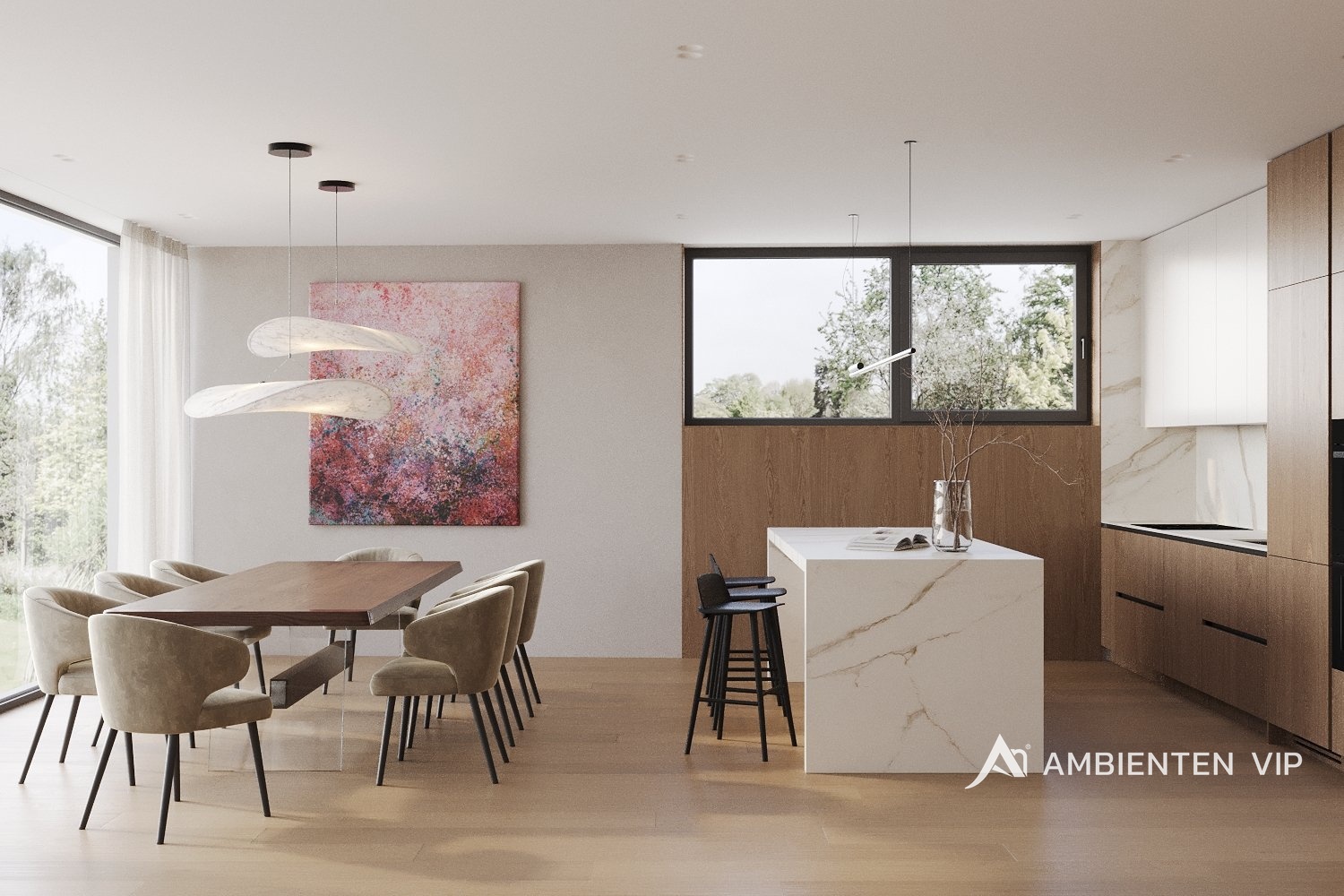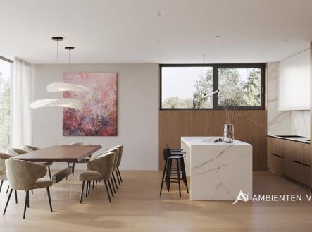 AMBIENTEN VIP si Vám dovoluje nabídnout ve výhradním zastoupení majitele jedinečný byt o dispozici 4+kk s terasou a zahradou v nově postavené luxusní rezidenci nacházející se v obci Rozdrojovice. Celková užitná plocha bytu je 154,59 m² a nachází se v 1. nadzemním podlaží. Součástí prodejní ceny jsou také 2 garážové stání. Byt disponuje vstupní halou (13,9 m²), prostorným obývacím pokojem (33,98 m²), kuchyňským koutem s jídelnou (36,06 m²), šatnou (2,85 m²), dvěma ložnicemi (17,16 m² a 14,52 m²), dětským pokojem (13,16 m²), koupelnou s vanou a sprchovým koutem (8,48 m²), dvěma toalety (obě o velikosti 1,79 m² ) terasou (31,5 m²) a zahradou (434 m²). Při výstavbě rezidence byly použity nejkvalitnější materiály. V bytě jsou hliníková okna s izolačními trojskly. Podlahy v bytě jsou vinylové lepené vhodné pro podlahové vytápění. Vytápění v bytě je řešeno přes podlahové vytápění elektrické s využití uhlíkové technologie Heatflow. Ohřev vody je řešen přes elektrický zásobník. Součástí jsou i klimatizační jednotky pro chlazení (Samsung) v bytové jednotce a lokální rekuperační jednotky. Celý byt je také vybaven bezfalcovými dveřmi. Okna jsou hliníková s izolačním trojsklem a pro komfort můžete také využít zabudované venkovní žaluzie. Koupelna má keramické obklady a dlažby. Sanita a zařizovací předměty jsou dodány od společností: RAVAK (vodovodní baterie), HANSGROHE (umyvadla), RAVAK (vana), HANSGROHE (vanové a sprchovací baterie), ROLTECHNIK (sprchová zástěna) a GEBERIT (pod omítkový WC modul). V bytě se nachází příprava pro kuchyni (instalace pro dřez, myčku, digestoř a rozvody pro spotřebiče), pračku, sušičku. Byt je vybaven inteligentní domácností Loxone. Garáž je určena pro šest vozidel, s třemi elektro dobíjecími stanicemi a s jedním technickým umyvadlem. Vjezd sekčními garážovými vraty, které jsou na dálkové ovládání, popřípadě ovládání aplikací (Loxone). Z garáže je propojení vnitřními dveřmi do společných prostor domu. Prostor garáže je temperován elektrickým podlahovým vytápěním Heatflow. Rezidence se nachází v Rozdrojovicích, malebné obci v těsné blízkosti Brněnské přehrady. Tato lokalita představuje ideální spojení klidného bydlení v přírodě s rychlou dostupností města. Rozdrojovice jsou perfektním místem pro ty, kteří chtějí žít v harmonickém prostředí obklopeném lesy, ale zároveň mít veškerou občanskou vybavenost na dosah. Brněnská přehrada, vzdálená jen pár minut, nabízí široké možnosti relaxace, vodních sportů i příjemných procházek. V okolí se nachází také moderní wellness centra, která poskytují dokonalé místo pro odpočinek a regeneraci. Díky výborné dopravní dostupnosti se dostanete do centra Brna za pouhých 15 minut autem, což činí tuto lokalitu atraktivní i pro ty, kteří pracují ve městě, ale po pracovním dni touží po klidném zázemí. Rozdrojovice jsou skvělou volbou pro rodinné bydlení i aktivní životní styl. V blízkosti se nacházejí školy, školky, restaurace a sportovní zařízení. Pokud hledáte komfortní domov v krásném prostředí s výhodami města na dosah, tato nabídka je pro vás ideální. V případě zájmu o více informací, nebo o prohlídku neváhejte se nás kontaktovat!