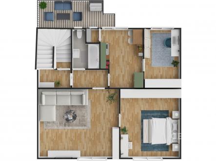 V zastoupení majitele nabízíme k prodeji dvougenerační rodinný dům v Rozdrojovicích. Původně jednopodlažní, částečně podsklepený cihlový dům pocházející z roku 1960 byl v roce 1975 rozšířen o druhé nadzemní podlaží. Vznikly tak dvě bytové jednotky se společným vstupem, kdy v prvním nadzemním podlaží je umístěný byt o velikosti 2+1 se sociálním zařízením, přístupem do sklepa a na dvůr. Ve druhém NP je umístěn byt o velikosti 3kk se sociálním zařízením a s terasou situovanou do zahrady. Přístup na půdu umožňuje schodiště přístupné z předsíně. Dům je určen ke kompletní rekonstrukci a jeho potenciál lze využít pro větší rodinu, nebo k investici a přestavbě s rozšířením o půdní byt. Dům je vytápěn společným ústředním plynovým kotlem, ohřev vody v jednotlivých bytech zajišťují samostatné el. bojlery. Dům je napojen na obecní vodovod a kanalizaci, elektřina včetně 380V. Na dům navazuje dvorek s garáží, zahrada je rovinatá, oplocená, sousedící s dalšími zahradami. Na pozemku jsou umístěny další drobné stavby poskytující zázemí pro péči o dům a zahradu. Rozdrojovice jsou menší obcí, která se stala vzhledem k těsné blízkosti od Brna (5 km BrnoBystrc), výborné dopravní dostupnosti a skvělé lokalitě s možnostmi rekreačního vyžití (Brněnská přehrada, lesy, cyklostezky), velmi žádanou lokalitou. V obci je smíšený obchod, MŠ, ZŠ do 5. třídy, hostinec, Wellness hotel Atlantis, řemeslný pivovar, nová tělocvična a jsou zde pořádány různé kulturní akce. Pokud vás nabídka zaujala, zvažujete dvougenerační bydlení, nebo máte velkou rodinu, či podnikatelský záměr, neváhejte se na mě obrátit a využít této příležitosti. Budu se na vás těšit.