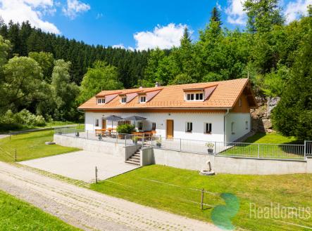 V exkluzivním zastoupení majitele Vám nabízím výjimečnou nemovitost – Apartmány Rosenberg, situované v klidném prostředí romantického města Rožmberk nad Vltavou, jen pár kroků od řeky Vltavy. Nemovitost je ideální k okamžitému podnikání, rodinné rekreaci či vícegeneračnímu bydlení. Nemovitost je dlouhodobě velmi žádaná a využívána ke komerčním účelům, což z ní činí atraktivní investiční příležitost. Popis objektu Nemovitost tvoří dva samostatné, moderně vybavené apartmány, každý s vlastním vstupem. Oba apartmány disponují komfortním zázemím: plně vybavenou kuchyní, obývací částí, koupelnami a dvěma ložnicemi. Součástí prodeje je téměř kompletní vybavení, včetně spotřebičů a nábytku. Apartmán č. 1 Přízemí: – Plně vybavená kuchyň s jídelním koutem – Obývací část s krbovými kamny a televizí – Koupelna se sprchovým koutem, WC a pračkou Patro: – 1. ložnice (manželská postel + 2× jednolůžko) – 2. ložnice (2× jednolůžko) – Koupelna s vanou a WC Apartmán č. 2 Přízemí: – Plně vybavená kuchyň s jídelním koutem – Obývací část s krbovými kamny – Koupelna se sprchovým koutem a WC Patro: – 1. ložnice (manželská postel + dětská postýlka) – 2. ložnice (3× jednolůžko) – Galerie (rozkládací pohovka, TV) – Samostatné WC Další vybavení a zázemí – Vytápění: moderní tepelné čerpadlo s dálkovým ovládáním + krbová kamna – Parkování na soukromém pozemku s kamerovým systémem – Zabezpečovací systém s možností ovládání na místě i na dálku – Wi-Fi v celém objektu – Samostatná uzamykatelná místnost pro kola a lyže – Terasa s výhledem na řeku Vltavu, gril a ohniště – Zahrada ke každému apartmánu Lokalita Rožmberk nad Vltavou patří k nejkrásnějším lokalitám Jižních Čech. – Historický hrad a řeka ideální ke splouvání – Blízkost Lipna a Českého Krumlova – Skvělé podmínky pro cykloturistiku, pěší výlety, rybaření i zimní sporty (Hochficht, Kramolín) – V docházkové vzdálenosti půjčovna lodí, restaurace i obchod Tato nemovitost nabízí více než jen bydlení – nabízí příležitost. Ať už hledáte investici, vlastní rekreační zázemí nebo místo pro trvalé bydlení, rád Vás nemovitostí osobně provedu. Upozornění: Uvedené výměry jsou orientační. V případě více zájemců může být nemovitost prodána nejlepší nabídce, přičemž majitel si vyhrazuje právo výběru kupujícího. Veškeré údaje uvedené v inzerátu mají informativní charakter.