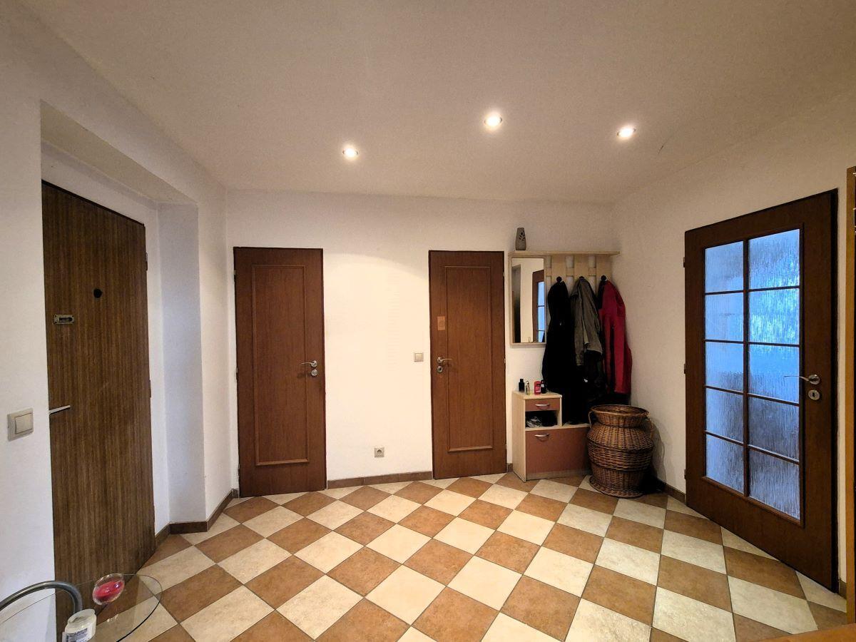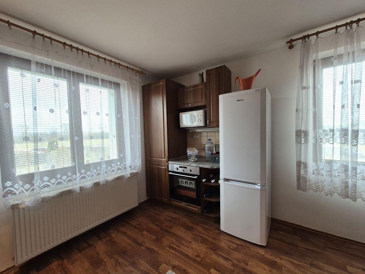Cihlový byt 3+k.k. se zasklenou lodžií, garáží a zahrádkou se nachází na okraji obce Pňovice, do 3 km od Rožmitálu p. Třemšínem, ve 2. NP cihlového, bytového domu (po kompletní revitalizaci - střecha, zateplení, fasáda, hydroizolace, společné chodby). Jedná se o příjemně světlý byt (58,56 m2) se zasklenou lodžií orientovanou na JZ (3,15 m2), sklepem v 1.NP (3,71 m2), garáží (18,10 m2) a samostatnou zahrádkou (193 m2). Praktickou rekonstrukcí bytu v r. 2010 byla změněna dispozice na 3+k.k., nové bytové jádro s koupelnou a vanou, kompletní rozvody elektřiny v celém bytě včetně rozvody vody a odpadů, samozřejmostí jsou plastová okna, ÚT s radiátory a elektrokotlem, podlahové krytiny - kombinace dlažby a PVC s dekorem dřeva. Vytápění bytu je vyřešeno přes ÚT z vlastního elektro kotle, teplá voda přes el. bojler, vodné - stočné se nehradí (vlastní studna pro bytový dům), jímka se vyváží na náklady SVJ. Měsíční náklady na bydlení: 5000,- Kč (FO, osvětlení, pojištění, vývoz septiku, úprava vody, splátka úvěru, vlastní vytápění a elektřina v bytě). Velkou výhodou bytu je vlastní garáž přímo v 1.NP domu, kde pohodlně zaparkujte i větší rodinné auto. Další velmi důležitou součástí prodeje bytu je i samostatný, oplocený pozemek před bytovým domem (193 m2), využívaný jako vlastní zahrada se zelení a okrasnými keři. Koupě bytu vhodná pro klidné bydlení na venkově, v blízkosti brdských lesů, přitom dobře dostupné kompletní občanské vybavenosti Rožmitálu p. Tř., nebo do 15 min jízdy autem Příbram.