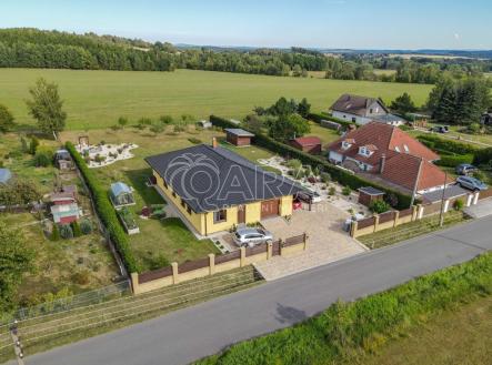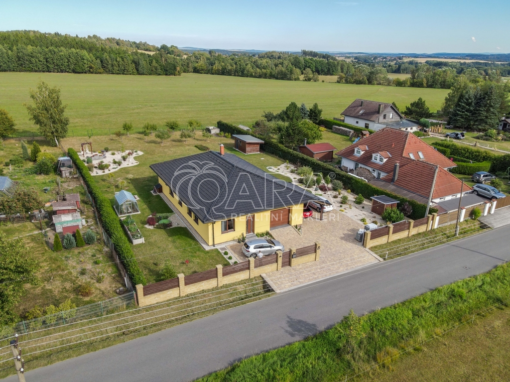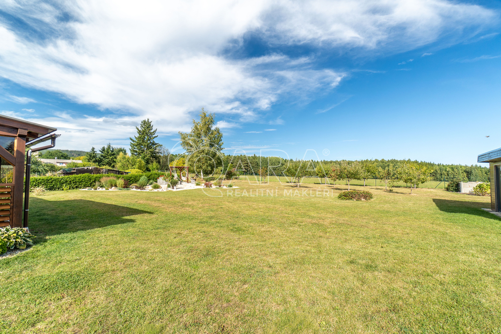 Prodej výjimečného přízemního rodinného domu 7+kk s garáží na rozlehlém pozemku o velikosti 2 118 m², zasazeného do malebné krajiny na okraji brdských lesů s dechberoucími výhledy. Tento dům vyniká svou velkorysou dispozicí 7+kk, která nabízí dostatek prostoru i soukromí pro každého člena rodiny. Dominantou je prostorný obývací pokoj s kuchyňským koutem, na který navazují další místnosti a to ložnice, dětský pokoj, 2x pokoj pro hosty, dvě pracovny, šatna, technická místnost, koupelna a samostatné WC. Více naleznete v přiložené 3D prohlídce. Díky nadstandardní výšce dveří působí celý interiér ještě vzdušnějším a elegantnějším dojmem. Součástí domu je garáž a před ní také dostatek parkovacího místa. Potěší vás i velmi nízké náklady na provoz (3 500 Kč měsíčně), což potvrzuje i energetická náročnost kategorie B. Je zde instalováno jedno z nejlepších tepelných čerpadel IVT země-voda. Pozemek o více než dvou tisících metrech čtverečních je rovinatý, maximálně využitelný a rozčleněný do několika částí tak, aby každý našel své místo pro odpočinek, zábavu či práci na zahradě. Nachází se tady také 2x zahradní domek, vyvýšené záhony na pěstování zeleniny, sad s ovocnými stromy a kvalitní skleněný skleník. To, co však činí tuto nabídku naprosto jedinečnou, je samotná lokalita. Na jedné straně výborná dopravní dostupnost do Prahy i Plzně, na straně druhé kouzelná příroda brdských lesů přímo za vašimi zády. Veškerou občanskou vybavenost zajistí blízký Rožmitál pod Třemšínem, a pokud pracujete z domova, dvě samostatné pracovny poskytnou ideální zázemí. Okolní krajina je doslova stvořená k odpočinku i aktivnímu trávení volného času – ze zahrady i z domu se vám otevírají neopakovatelné výhledy, čekají vás nekonečné procházky, výlety na kole či chvíle klidu v naprostém soukromí vlastního domova.
