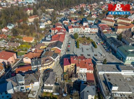 Nabízíme Vám k prodeji komerční objekt na Masarykově náměstí v Rožnově pod Radhoštěm. Dům je přístupný z náměstí a má k dispozici, jako málokterá nemovitost v této lokalitě, 8 parkovacích míst. V 1. NP je dlouhodobě užíván nájemcem, ve 2. NP je již zahájena příprava prostorů buď pro několik menších komerčně využívaných prostor, případně pro dvě až tři bytové jednotky. Ve 3. NP je již zpracován návrh na vybudování bytu o celkové ploše cca 160 m² s prostornou terasou a výhledem na horu Radhošť a Jurkovičovu rozhlednu. Náš hypoteční specialista Vám nabídne vhodné financování této nemovitosti. Doporučujeme prohlídku.