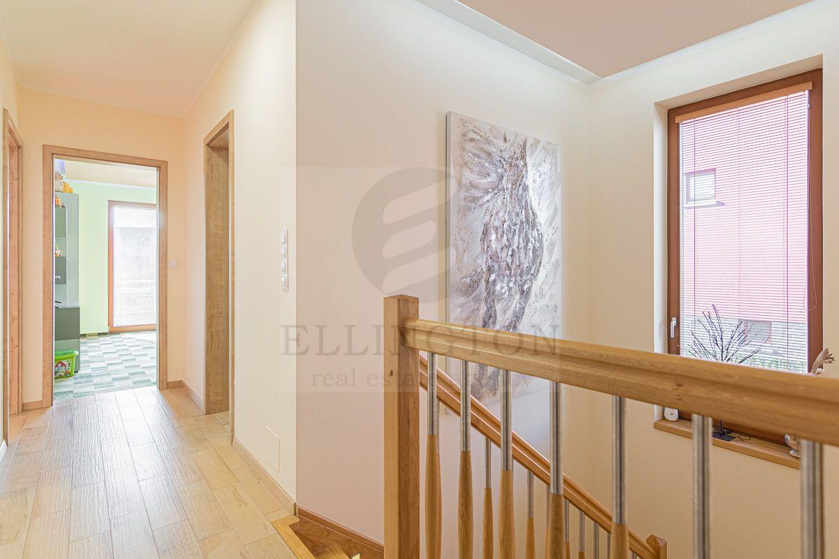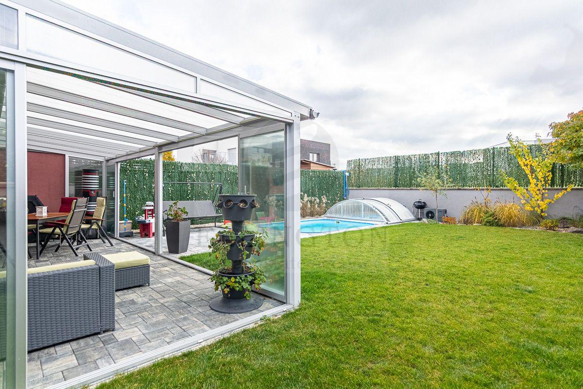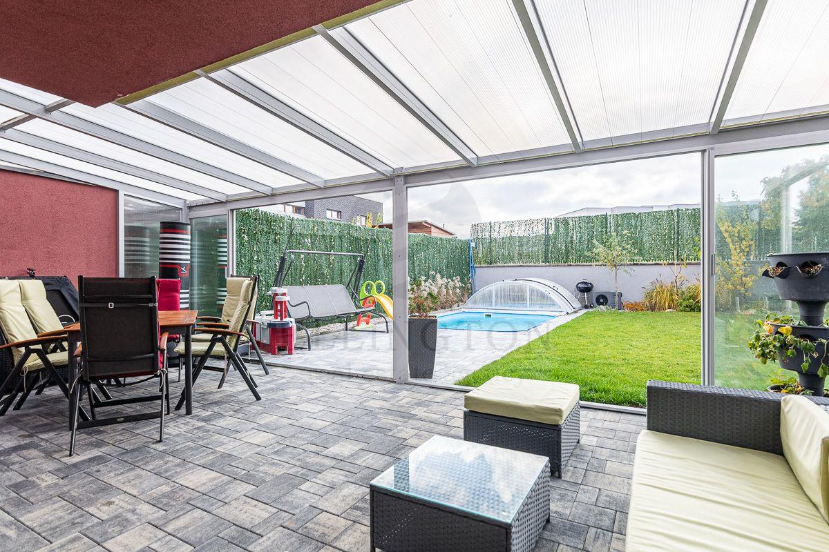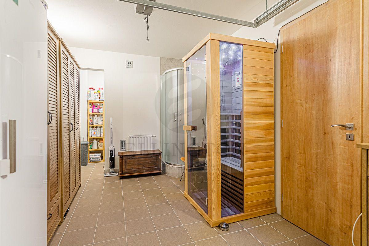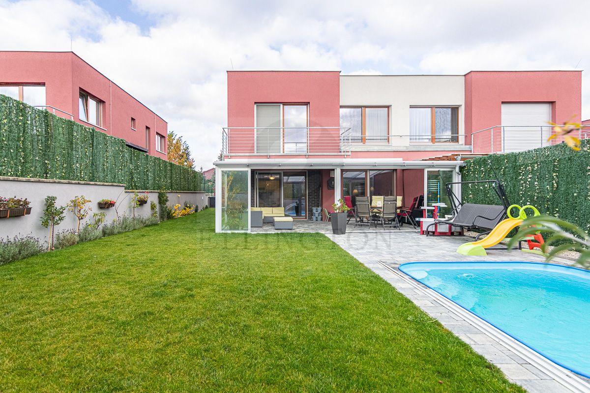 Nabízíme prodej rodinného domu 5+kk na Praze- západ město Roztoky, které se pyšní nejen krásnou přírodní rezervací Tiché údolí, ale i také kompletní občanskou vybaveností včetně škol a školek a přesto kousek od Prahy. Jedná se o novostavbu 5+kk s garáží kolaudovanou v roce 2018 o celkové rozloze 162m2 na pozemku 381m2. V přízemí domu se nachází zádveří z kterého se vchází do šatny z vest. skříní také samostatná toaleta , technická místnost, infra sauna se sprchovým koutem, která je umístěna v garáži. Dále se vchází do obývacího pokoje s přípravou na krb a plně vybavenou kuchyní spojují s terasou a soukromou zahradou s velkoformátovými okny. Patra spojují masivní dřevěné schodiště se stejném stylu jako jsou parapety a zárubně dveří. V první podlaží se nachází 4 ložnice, z nichž dvě mají vlastní vstup na terasu s výhledem do zahrady. V celém domě byli použity nadstandardní prvky včetně sanity, kompletně zařízený kvalitním nábytkem na míru (lze prodávat i nezařízený). Soukromí horního podlaží doplňuje koupelna s vyhřívanou podlahou (toaleta, vana, sprchový kout) a samostatná toaleta, vše vybaveno sanita Grohe. V přízemí je položena luxusní dlažba Marazzi, v celém domě jsou sádrové omítky, podhledy a všechna okna disponují venkovními žaluziemi na ovládání a sítěmi proti hmyzu. Vytápění domu je řešeno plynovým kotlem Protherm a podlahovými konvektory v kombinaci s s radiátory. Garáž a vstupní brána jsou na dálkové ovládání a bezpečnost celého domu zajišťuje alarm. Zahradní bazén se slanou vodou (4x3 m) a protiproudem na automatické ovládání doplňuje zastřešená terasa, hliníková pergola s plisé roletkami, trávníkový koberec s automatickým zavlažováním a zahradní domek. Velmi pěkné bydlení které vnese do života soukromí a výjimečný komfort. Možnost hradit i hypotečním úvěrem s kterým vám i velice rádi pomůžeme. Vzhledem k lokalitě tuto nabídku doporučujeme. Nutno vidět.