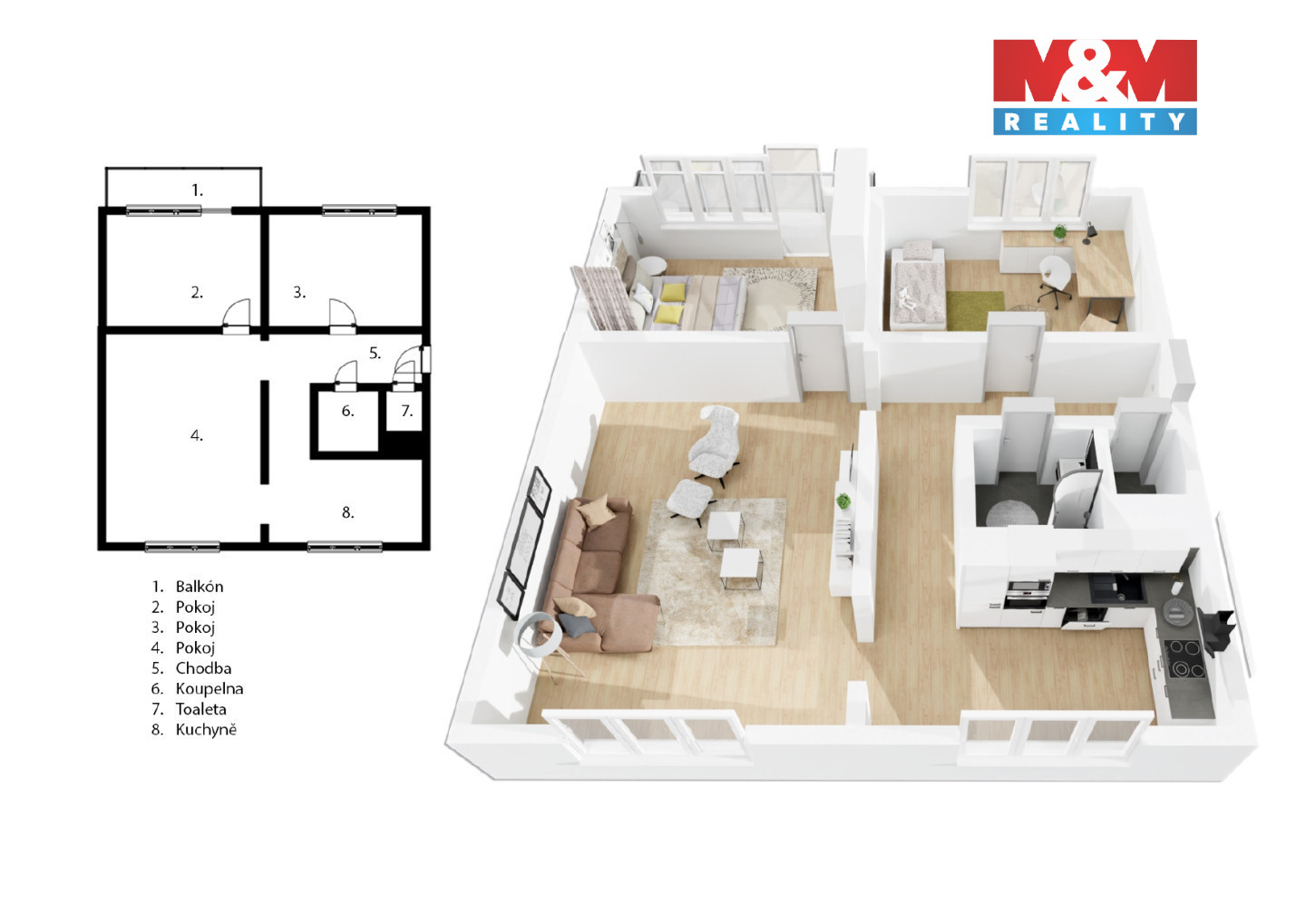 Hledáte klidné a moderní bydlení na dosah hlavního města? Nabízíme vám k prodeji světlý, slunný byt 3+1 o užitné ploše 76 m² v žádané lokalitě Roztok u Prahy. Bytová jednotka v osobním vlastnictví je ve zvýšeném přízemí pětipodlažního panelového domu. Byt je ve velmi dobrém stavu, částečná rekonstrukce zahrnuje plovoucí podlahy, okna, zděnou koupelnu se sprchovým boxem, částečně elektřina v mědi. Ložnice má přístup na lodžii - 3,5 m², je orientovaná na jihozápad, kuchyně a obývací pokoj směřují na severovýchod. Součástí prodeje je i poměrně rozlehlý sklep 7,5 m², bonusem je energetická náročnost budovy s hodnotou B - velmi úsporná. Díky vizualizaci si můžete představit, jak příjemně může Váš byt vypadat po rekonstrukci. Další výhodou je občanská vybavenost a snadná dostupnost do centra Prahy. Pokud hledáte příjemné bydlení v klidné lokalitě, tato nabídka je přesně pro vás.