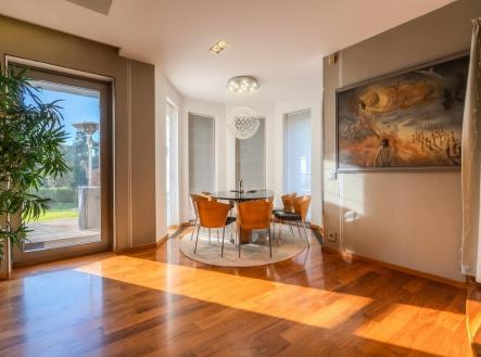 Konkurenčních nabídek a rodinných domů v této kategorii byste v aktuální nabídce na realitním trhu našli opravdu málo. Rodinné sídlo, kde budete mít opravdu, ale opravdu všechno? Navíc s maximálním soukromím v jedné z nejlukrativnějších lokalit blízko Prahy? Nejen to Vám nabízí tento nadstandardní rodinný dům v Roztokách u Prahy. Celý koncept domu i zahrady s příslušenstvím je pojat skutečně velkoryse. Dispozice, prostor, materiály, detaily, technické zázemí a provedení, ale hlavně také atmosféra, pohoda, luxus… To vše se dá očekávat od této nemovitosti, která přesto, že je užívána od roku 2013 a zasloužila by si drobný „facelift“, dle Vašich představ, splňuje veškeré nároky dnešní doby, a to i pro budoucí majitele, kteří mohou mít skutečně náročné očekávání. Popsat veškeré informace k domu jistě zvládneme, ale předat ten pocit a emoci, to nelze, to musíte zažít. Pro začátek Vám mohu nabídnout malou ochutnávku v podobě fotografií a virtuální prohlídky, kde si dům můžete projít téměř na živo. Přece jen si však dovolím stručný popis, ať si před osobní prohlídkou uděláte alespoň stručný obrázek. Dům je dispozičně řešen jako 6+1, ale na třech patrech a zahradě s příslušenstvím je toho mnohem víc. V přízemí tvoří hlavní obytnou část obývací pokoj s krbem, domácím kinem a navazuje na něj moderní kuchyně s barovým posezením a jídelnou, odkud je krásný výhled do zahrady. Chvíle odpočinku lze trávit v prosklené zimní zahradě. Na patře je pak ještě pokoj pro hosty, technické místnosti a z domu přístupná garáž pro dvě auta a sklad. Celková plocha přízemí je 255m2. Druhé nadzemní podlaží nabízí s plochou cca 151m2 celkem 4 ložnice, 3 šatny, dvě koupelny, 3 balkony a jednu téměř 40m2 terasu. Sklep pak kromě technického zázemí a skladů disponuje prostory, jejichž užívání bude dělat radost nejen Vám a Vašim dětem, ale také případným návštěvám přátel a rodinných příslušníků. Najdete zde saunu s relaxační zónou, posilovnu s barem, krytý bazén s panoramatickými okny, a nejen vyznavači vína a doutníků ocení samostatnou vinárnu s praktickým zázemím. Na zahradě jsou pak citlivě rozmístěny části s různým využitím. Dominantní je zahradní altán, který obsahuje společenskou místnost, pracovnu, „vířivku“, kuchyň, koupelnu, krb, gril i hernu v jednom. Venkovní bazén je obklopen vzrostlou a udržovanou zelení, vč. palem a na své si přijdou i děti na dětském hřišti či milovníci buřtů u ohniště. Jezírko s červenými kapry je pak již třešničkou na dortu. Za domem je pak samostatně stojící garáž pro dvě vozidla se skladem a místností, kde je umístěna technologie pro akvárium v posilovně. Je toho určitě víc, co bychom si k domu mohli říct. Technické informace, stavební dokumentace – prakticky vše je pro Vás připraveno. Jedná se o prodej v insolvenčním řízení, kdy je předmětem prodeje pouze nemovitý majetek (movitý majetek není předmětem prodeje). Nový zájemce pak bude vybrán na základě předložené nabídky, která bude nejlépe splňovat očekávání.