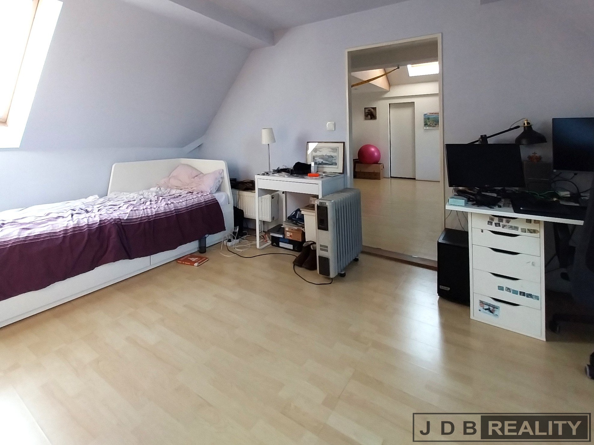 Nabízíme k pronájmu jednu ze dvou bytových jednotek o velikosti 103 m2 a dispozici 4+kk v rodinném domě v centru Roztok u Prahy. Dům se sedlovou střechou z roku 2000 se nachází na pozemku o celkové výměře 622 m2. Do bytové jednotky je přístup po vnějším schodišti, což zaručuje absolutní soukromí. Bytová jednotka disponuje kuchyní s jídelním koutem a kuchyňskou linkou s elektrickým sporákem, troubou a myčkou, velkým obývacím pokojem, koupelnou s vanou a wc, dalším samostatným wc, dalšími dvěma pokoji a šatnou (komorou). Vzhledem k dostatečnému množství střešních oken je celý byt velice dobře prosvětlen. Celý dům je vytápěn plynovým kotlem, je napojen na obecní vodovod, kanalizaci a ohřev vody je zajištěn elektrickým bojlerem. V blízkosti domu se nachází mateřská školka, základní škola a také autobusová zastávka. Vlakové nádraží, ze kterého dojedete do centra Prahy za 10 minut, je vzdálené 1 km od domu. Parkování je možné přímo před domem. Město Roztoky je velmi žádanou lokalitou s vynikající dostupností do Prahy, kde nalezneme veškerou občanskou vybavenost (např. školka, škola, lékař, pošta, obchody, restaurace, veterinář a několik dětských hřišť). V blízkosti města je několik turistických tras a cyklostezek. Měsíční náklady: Nájemné – 23.000,-Kč Poplatek za energie – 5.000,-Kč (elektřina, vodné stočné, topení, svoz odpadů, internet) Kauce – 28.000,-Kč + provize RK Bytová jednotka, která je vhodná jak pro rodiny, tak také například skupinu studentů, bude před nastěhováním vyklizena a vymalována. Byt bude připraven k nastěhování od 1.3.2026, případně po dohodě. Pro více informací nebo sjednání prohlídky mě neváhejte kontaktovat.