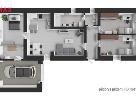 Nabízíme k prodeji prostorný rodinný dům o dispozici 4+kk, který se nachází v klidné části obce Rpety. Dům má v přízemí užitnou plochu 108 m² a dalších 136 m² v podkroví, kde již existuje jeden pokoj (17.6 m²) nad garáží a zbývající půdní prostor je možné přestavět na plnohodnotné obytné místnosti. Celková výměra pozemku činí 472 m². Dům byl v průběhu let průběžně udržován a modernizován. Před třemi lety prošel interiér kompletní rekonstrukcí, která zahrnovala nové rozvody elektřiny a vody, nové podlahy, koupelnu a také moderní kuchyňskou linku se spotřebiči značky Whirlpool, která zůstává součástí prodeje. Výměna oken a úpravy střechy proběhly postupně v předchozích letech. Střecha je sedlová s betonovou taškovou krytinou. V přízemí se nachází vstupní chodba, prostorný obývací pokoj s kuchyňským koutem, tři další samostatné pokoje, koupelna, toaleta, technická místnost a garáž. Vytápění je řešeno ústředním topením radiátory. Hlavním zdrojem tepla je elektrokotel Thermona se zásobníkem na ohřev TUV. Velkou výhodou jsou moderní krbová kamna Aquaflam Barma 11 kW s výměníkem, která umožňují ekonomické vytápění teplovodního systému s účinností přesahující 80 %. Dům je napojen na obecní vodovod a elektřinu. Odpad je sveden do jímky. Na pozemku probíhá vsakování dešťové vody. Pozemek o celkové výměře 472 m² je oplocený a částečně terasovitý. Zahrada je orientovaná na jih a díky jabloním nabízí příjemné soukromí. Nádvoří u domu je rovinaté a umožňuje parkování jednoho vozu. Druhé auto lze zaparkovat v garáži (22.4 m² ) a další místo je možné před domem na ulici. Na nádvoří se nachází také podzemní sklípek. Dům leží v klidné části obce Rpety. Okolí nabízí příjemné podmínky pro rodinné bydlení, dostatek zeleně a rychlou dostupnost do Hořovic (autem 5 min), Berouna (20 min) a na dálnici D5 ve směru na Prahu i Plzeň (30 min). V obci se nachází autobusová zastávka (linka Hořovice-Příbram), COOP, širší služby jsou snadno dostupné v sousedních Hořovicích. Dům je vhodný pro rodinu, která hledá klidné místo k bydlení a dostatek prostoru. Díky proběhlé rekonstrukci interiéru není nutné žádné okamžité investování a dům je připraven k nastěhování. Pokud máte zájem o prohlídku nebo více informací, neváhejte mě kontaktovat.