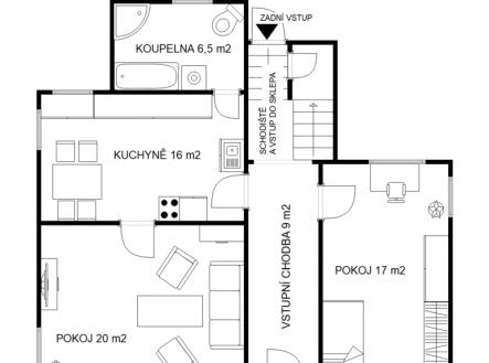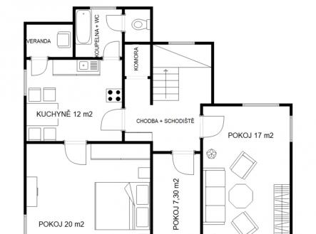 V klidné části obce Hrabenov, jen pár minut od Šumperka, nabízím k prodeji samostatně stojící rodinný dům určený k rekonstrukci, který zaujme především svou velikostí, dispozicí a širokými možnostmi využití. Hrabenov je malebná obec v podhůří Jeseníků, ideální pro ty, kteří hledají klid, přírodu a přitom chtějí zůstat v dosahu města – do Šumperka se pohodlně dostanete autem nebo autobusem během několika minut. Dům je celkově podsklepený, má dvě nadzemní podlaží a navíc prostornou půdu. Druhé podlaží bylo dostavěno v roce 1971, dosud však nebylo dokončeno ani užíváno, což dává novému majiteli volnost přetvořit si interiér podle svých představ. Zastavěná plocha domu s nádvořím činí 152 m², k domu přiléhá členitá zahrada o výměře 394 m². Přístup k domu je zajištěn pohodlně přímo z obecní komunikace. Dispozice domu je praktická a dobře odděluje jednotlivé obytné zóny. V 1. nadzemním podlaží se nachází dvě obytné místnosti, kuchyně a koupelna s toaletou. Ze vstupní chodby vede dřevěné schodiště do 2. podlaží, které disponuje dalšími třemi pokoji, kuchyní, komorou, koupelnou, samostatným WC a dřevěnou verandou orientovanou do zahrady. Velkou výhodou této nemovitosti je prostorná dílna o výměře 35 m², umístěná hned za domem. Je ideální pro kutila, drobného podnikatele nebo jako zázemí pro řemeslnou činnost. Díky umístění a velikosti nabízí dostatek prostoru i pro skladování, opravárenskou činnost nebo koníčky. Naproti přes cestu se nachází samostatná garáž s dřevníkem (také cca 35 m²) a navazující zahrada, kterou lze využít nejen pro pěstování, ale i pro další parkování – ať už auta, karavanu, nebo přívěsu. Střešní konstrukci tvoří dřevěné trámy s eternitovou krytinou. V domě jsou rozvody ústředního topení a vytápění je řešeno kombinovaně – kotlem na tuhá paliva a lokálně také akumulačními kamny. Ohřev vody pro celý dům včetně koupelny zajišťuje elektrický bojler umístěný v koupelně, v kuchyni je voda ohřívána samostatným elektrickým průtokovým ohřívačem. Okna byla vyměněna za plastová. Objekt je napojen na elektřinu včetně motorového proudu, obecní vodovod a kanalizaci. Plynová přípojka se nachází přímo na vlastním pozemku vedle domu. K dispozici je rovněž vlastní studna s užitkovou vodou. Tato nemovitost nabízí dostatek prostoru, zázemí a technických možností. Je ideální pro rodinu, která hledá bydlení s větším soukromím, i pro ty, kteří potřebují místo pro práci, podnikání nebo technické zázemí. Hrabenov je navíc výborně dostupný a díky své poloze představuje výjimečně vyváženou kombinaci klidu a praktičnosti. Rád vám dům osobně představím a odpovím na všechny vaše dotazy.