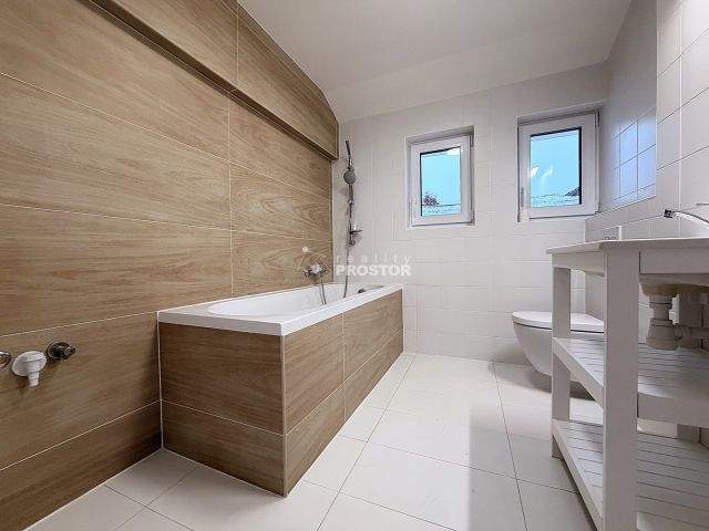 Exkluzivně nabízíme pronájem bytu 4+kk, o celkové ploše 112m2, v příjemně klidné ulici Nerudova, Rudná u Prahy. Nabízíme k pronájmu krásný, nově zrekonstruovaný byt 4+kk o výměře 90 m² s nadstandardní terasou 22 m², nacházející se ve 2. NP domu v ulici Nerudova, Rudná u Prahy.Byt je velmi světlý a moderně řešený. K dispozici je klimatizace, podlahové vytápění, nová kuchyňská linka včetně vestavných spotřebičů, kvalitní plovoucí podlahy a dlažby. Prostorný obývací pokoj s kuchyňským koutem poskytuje příjemné zázemí pro rodinu, k tomu byt disponuje třemi nadstandardně velkými ložnicemi.Koupelna je vybavena vanou a WC. Dominantou bytu je překrásná terasa o velikosti 22 m² s výhledem do zahrady – ideální pro relaxaci. Součástí je také půdní prostor o velikosti cca 50 m² přístupný přímo z bytu, vhodný pro úložné účely. Zahrada u domu může být po domluvě k dispozici. Parkování je bezproblémové přímo před domem.Město Rudná nabízí širokou občanskou vybavenost včetně škol, školek, obchodů, lékařů a množství sportovišť. Rodiny ocení bezpečné prostředí, parky, hřiště a výbornou dopravní dostupnost. Lokalita spojuje klid malého města s pohodlím kompletních služeb a Perfektní dostupností do Prahy.Doporučuji prohlídku této nemovitosti.