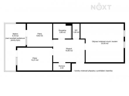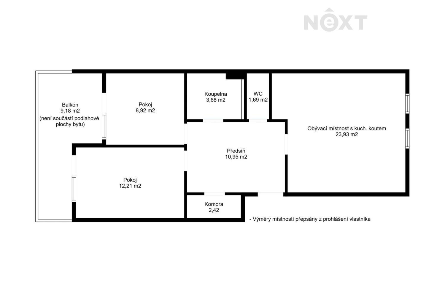 Bydlení, kde se budete cítit opravdu doma. Komfort, praktičnost, klid a příjemný výhled do vnitrobloku – to jsou hlavní přednosti tohoto velmi pěkného bytu 3+kk s prostorným balkónem, umístěného ve 2. nadzemním podlaží zděného domu v oblíbené Obchodní ulici v Rudné u Prahy. Byt o podlahové ploše 63,8 m² je promyšleně řešený tak, aby nabídl maximální pohodlí pro rodinné bydlení i moderní životní styl. Dominantou je světlý obývací prostor s kuchyňským koutem (23,93 m²), který přirozeně vybízí ke společným chvílím s rodinou či přáteli. Dva neprůchozí pokoje (12,21 m² a 8,92 m²) poskytují dostatek soukromí, ať už pro děti, pracovnu nebo ložnici. Velkým benefitem je balkón o velikosti 9,18 m², přístupný z obou pokojů, orientovaný do klidného vnitrobloku. Ideální místo pro ranní kávu, večerní sklenku vína nebo jen chvíli ticha po náročném dni. Balkón není započítán do podlahové plochy, přesto výrazně rozšiřuje obytný komfort bytu. Dispozici dále doplňuje prostorná předsíň, koupelna, samostatná toaleta a praktická komora, kterou ocení každý, kdo má rád pořádek a úložný prostor. Vytápění i ohřev teplé vody zajišťuje vlastní plynový kotel, což přináší kontrolu nad spotřebou a nízké provozní náklady. Dům je udržovaný ve velmi dobrém stavu a SVJ funguje bezproblémově. Dalším praktickým benefitem je vlastní parkovací místo v garáži v suterénu domu, které zaručuje pohodlí a bezpečí v každém ročním období. Rudná u Prahy nabízí ideální kombinaci klidného bydlení a výborné dostupnosti do hlavního města. Najdete zde kompletní občanskou vybavenost, zeleň, školy, školky i rychlé dopravní spojení do Prahy. Pokud hledáte byt, který má příjemnou atmosféru, funkční dispozici a místo, kde se budete cítit dobře hned od první návštěvy, pak by tato nabídka neměla uniknout vaší pozornosti. Rád vás osobně přivítám na prohlídce a ukážu vám, proč je tento byt výjimečný. Pro komunikaci uvádějte evidenční číslo zakázky N116167.