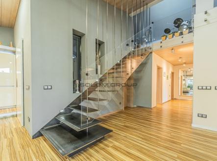 Nabízíme k prodeji komplex dvou rodinných domů nacházející se v klidné části obce Rudná u Prahy. Nemovitost představuje ideální příležitost pro vícegenerační bydlení nebo spojení bydlení s podnikáním. Hlavní rodinný dům - o dispozici 4+kk, užitné ploše 250 m² s pozemkem 772 m². Tento moderní a prostorný dům byl postaven ve vysokém standardu s důrazem na kvalitu materiálů, funkčnost a komfort bydlení. V přízemí se nachází velkorysý obývací prostor s jídelnou a moderní kuchyňskou linkou vybavenou vestavěnými spotřebiči – sklokeramická varná deska, odsavač par, lednice s mrazákem, horkovzdušná a mikrovlnná trouba, myčka nádobí. Součástí obývací části je rohová sedací souprava, designové křeslo, TV s audiosystémem a promítací plátno (vč. projektoru) s výsuvným mechanismem. Dominantou prostoru je krb na tuhá paliva, který dotváří příjemnou atmosféru domova. Z obývací části je přímý vstup na zahradu. Dále jsou zde dva dětské pokoje a hlavní ložnice s šatním prostorem, ze všech místností je umožněn přístup na terasu a zahradu. Koupelna je vybavena vanou, walk-in sprchovým koutem, dvěma umyvadly a toaletou. Další samostatná toaleta se nachází v chodbě. V domě je také technická místnost s prostorem pro pračku a sušičku. Dále galerie, která nabízí možnost vytvořit si útulné místo na spaní či relaxaci s výhledem do obytné části. Vytápění a ohřev vody zajišťuje kondenzační kotel s podlahovým vytápěním. K domu náleží samostatná moderní garáž o ploše 60 m², kde se nachází i samostatné WC a umyvadlo. Garáž je vytápěna vlastním kondenzačním kotlem. Na udržované zahradě je okrasné jezírko s japonskými Koi kapry a vodopádem, které dotváří jedinečnou atmosféru klidu a harmonie. Druhý rodinný dům - o dispozici 4+1, užitné ploše 103 m², s terasou 28 m² a pozemkem 249 m². Cihlový rodinný po úpravách - nová fasáda, nová garážová vrata, nová příjezdová cesta. V domě se nachází kuchyňská linka s vestavěnými spotřebiči - plynová varná deska, odsavač par, horkovzdušná a mikrovlnná trouba a lednice s mrazákem. Z obývacího pokoje možný vstup na zahradu. V domě jsou dále 3 samostatné pokoje. Na podlahách je položeno lino, koberec a dlažba. Vytápění zajišťuje plynový kotel. K domu přísluší garáž (33,6 m²). V případě dotazů kontaktujte manažera nabídky.