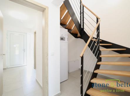 K dlouhodobému pronájmu nabízíme novostavbu rodinného domu 4+kk + pracovna v ul. U Nučického nádraží v Rudné u Prahy o velikosti 110 m² se zahradou 344 m² (pozemek celkem 516 m²). Jde o krajní stavbu řadového trojdomu. V přízemí naleznete prostorný obývací pokoj s výstupem na terasu a zahradu, kuchyňský kout, pracovnu a koupelnu se sprchou a WC. Ve 2. NP jsou 3 pokoje a koupelna s vanou a WC. RD je nabízen jako nezařízený, ovšem k dispozici je plně vybavený kuchyňský kout se spotřebiči - trouba, indukční varná deska, mikrovlnná trouba, myčka, lednice s mrazákem. • Zahradní domek na zahrádce • Na pozemku jsou 2 zpevněná zastřešená parkovací stání • Ohřev vody a topení zajišťuje tepelné čerpadlo • Instalovány předokenní rolety a sítě proti hmyzu • Dům vybaven klimatizací V této vilové čtvrti je výstavba již ukončena a obyvatelé jsou nastěhování ve svých nových domovech. Dům se nabízí jako bydlení pro rodinu s dětmi, ale též jako sídlo firmy. Dobrá dostupnost do hl. města – přímo v ulici je zastávka PID směr stanice metra B Zličín (17 min) a vlaková stanice směr Praha – Smíchovské nádraží (27 min), vzdálenost na hranici Prahy 5 km automobilem. Pohodlné spojení též na Pražský okruh, dálnici D5 a letiště Václava Havla. Dům je k dispozici od 1. 1. 2026. Výdaje: měsíčně nájemné činí 47.000 Kč + zálohy na služby 500 Kč / osoba. El. energii si nájemce převede na sebe, přičemž nájemci pomůžeme s výběrem vhodného dodavatele a zajistíme samotný přepis. Vratná kauce 50.000 Kč, odměna RK ve výši měsíčního nájmu + 21 % DPH.