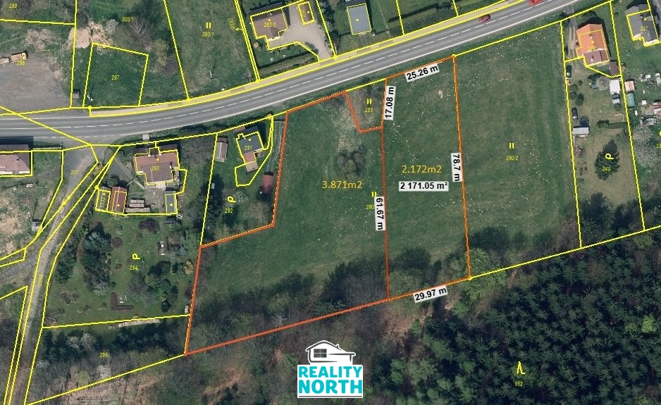 Reality North Vám zprostředkují prodej stavebního pozemku v katastrálním území Rybniště o velikosti 2.172m² Obdélníkový tvar pozemku je souběžný se silnicí Děčín-Rumburk, sklon pozemku je téměř rovina až nepatrně svažitý od nedalekého lesa k silnici . Vedení elektřiny je na druhé straně silnice, popř. cca 30m od kraje pozemku. Řešení vody buď rozšířením kapacity vodárny, nebo studnou na pozemku, odpad ČOV. Výhodou je možnost velikost pozemků změnit (po dohodě s majitelem) dle potřeby zájemce, nebo pozemek koupit celý - 6.043m2 za cenu 520Kč/m2. Více informací Vám rádi poskytneme v RK.