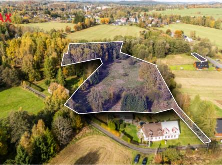 Výjimečný pozemek 13 000 m² s projektem chalupy – Rybniště u Krásné Lípy (CHKO Lužické hory)