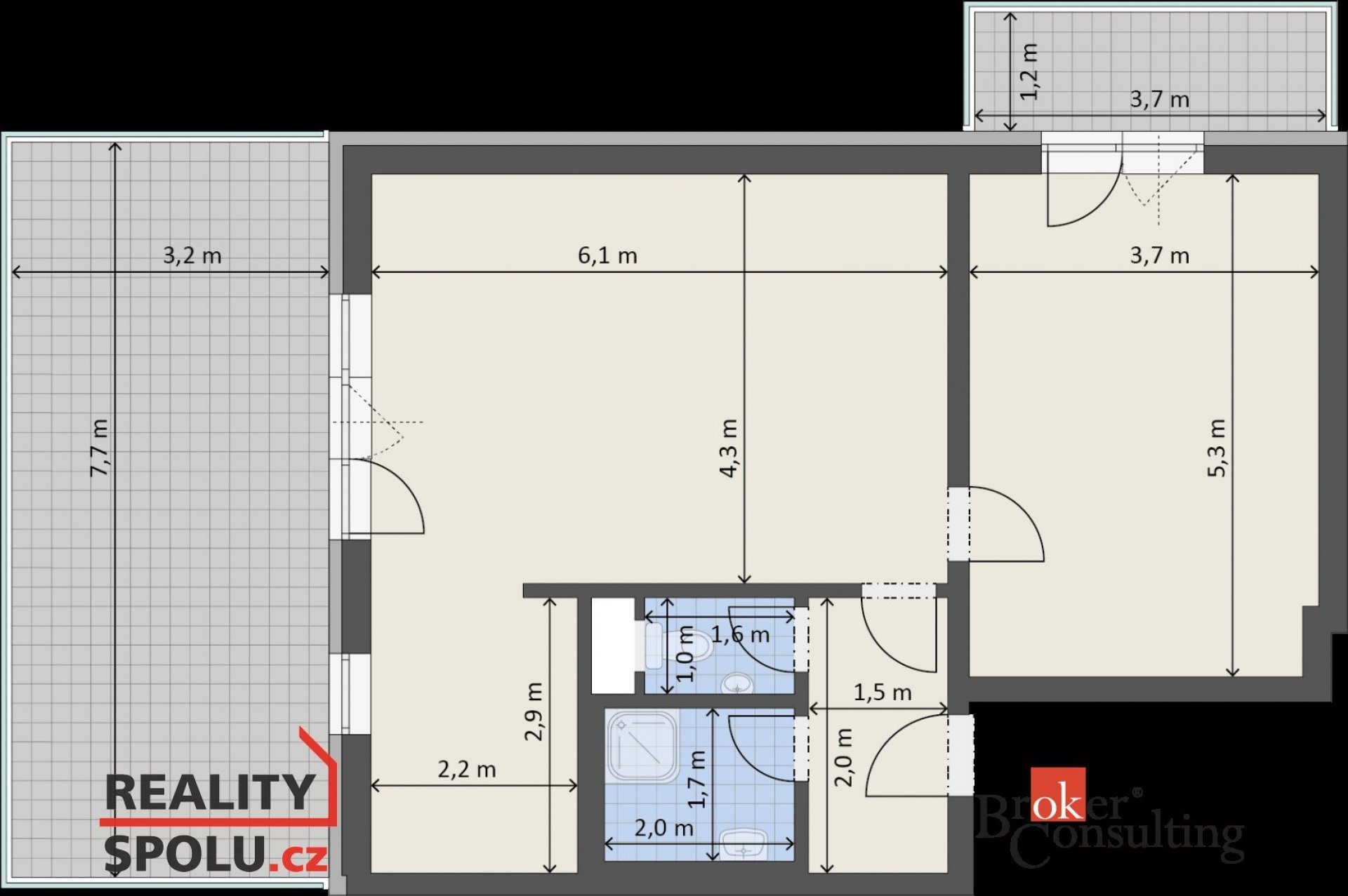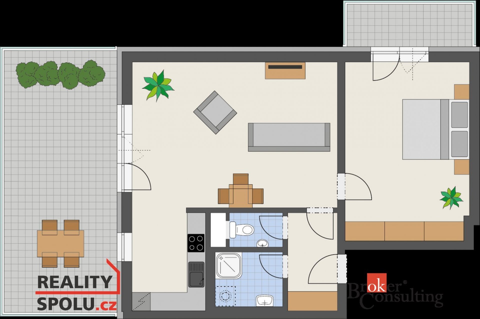 Střešní prostorné 2+kk s terasou a balkonem