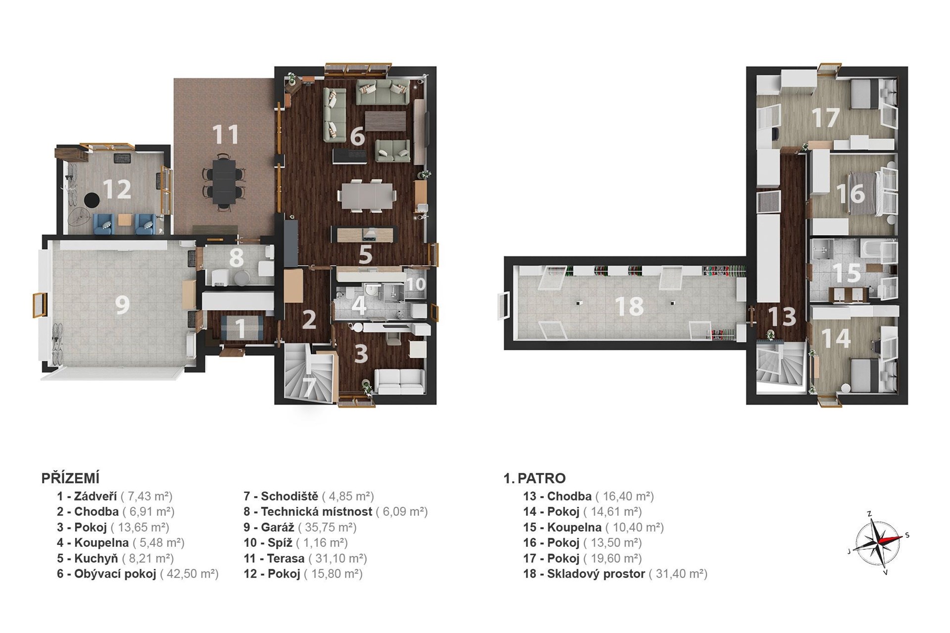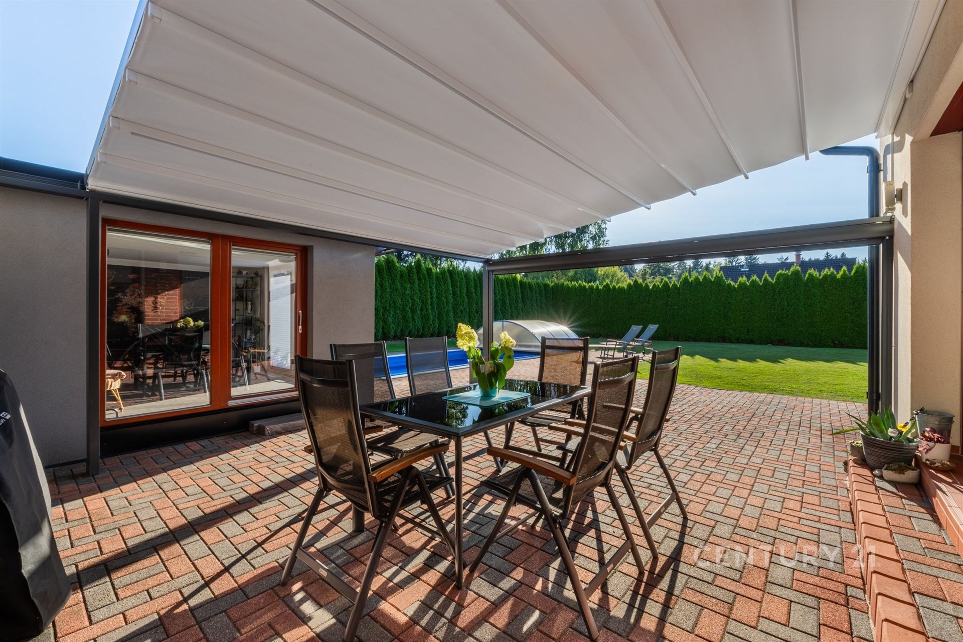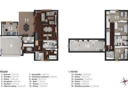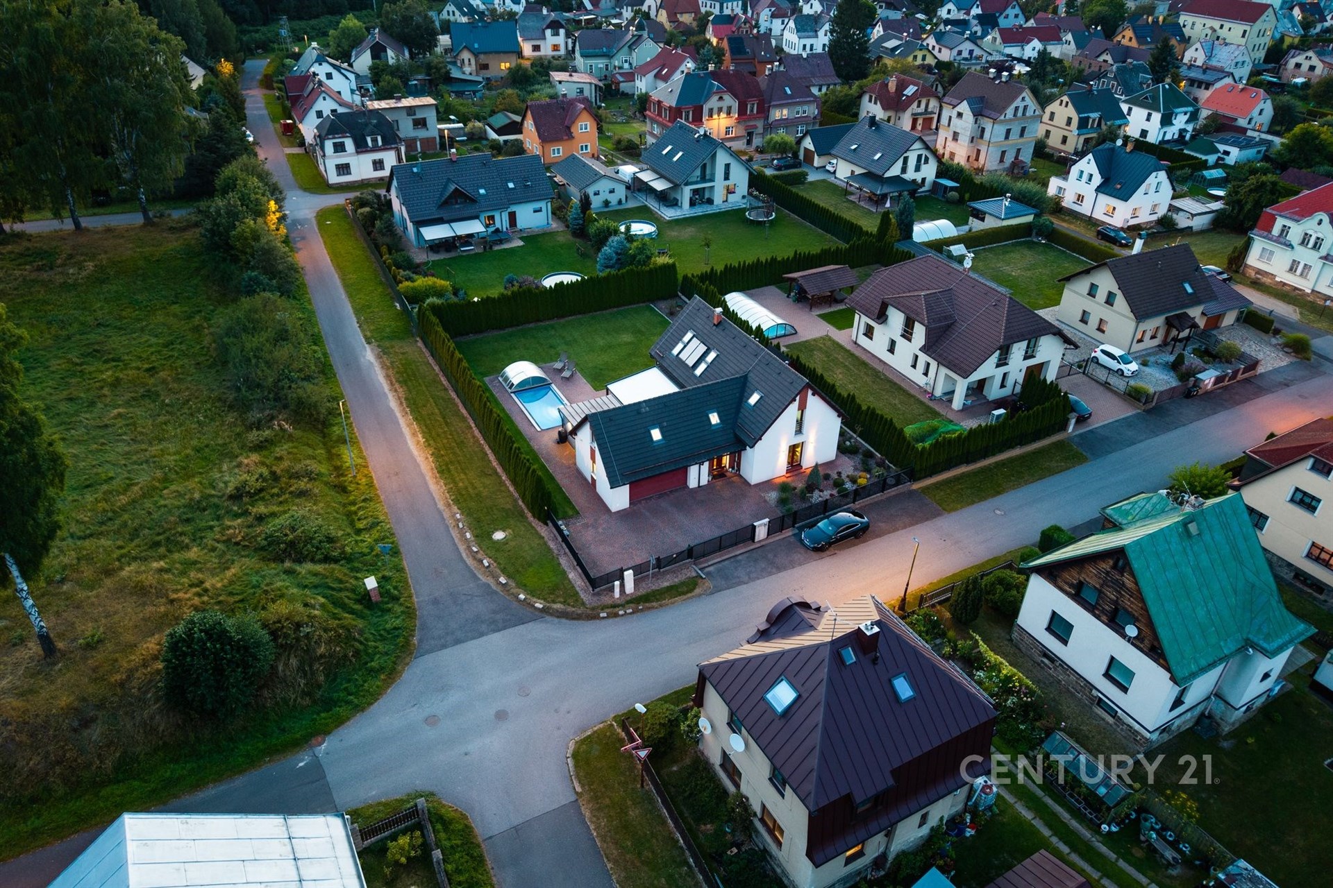 Hledáte domov, který nabídne dostatek prostoru, moderní technologie a klidné rodinné zázemí? Moderní rodinný dům na prestižní adrese Sokolská 872 v Rychnově u Jablonce nad Nisou splní vše, co od vysněného bydlení očekáváte. Tato výjimečná nemovitost, postavená v roce 2011, nabízí nadstandardní bydlení na krásném rovinatém pozemku o výměře 966 m² a splňuje veškeré nároky na komfortní rodinný život. Dům disponuje celkovou užitnou plochou 209 m², rozdělenou do dvou nadzemních podlaží. V přízemí Vás přivítá prostorný obývací pokoj s jídelnou (42,5 m²) a přímým vstupem na terasou o velikosti 31,3 m², která poskytuje výhled na zahradu s krytým zapuštěným bazénem se slanou vodou – ideálním místem pro letní grilování a rodinné oslavy. Na terasu navazuje samostatný pokoj (15,8 m²) vhodný jako pokoj pro hosty či pracovna. Součástí přízemí je dále kuchyň se spíží, koupelna se sprchovým koutem, pokoj (13,65 m²), technická místnost a prostorná garáž (35,75 m²) se dvěma parkovacími místy a nabíječkou pro elektromobil. Na pozemku je navíc možné zaparkovat až čtyři další vozy. Horní patro přináší klidnou atmosféru a soukromí pro každého člena rodiny. Najdete zde tři útulné ložnice, kde si každý člen rodiny vytvoří svůj vlastní prostor. Prostorná koupelna s vanou nabízí místo pro relaxaci po náročném dni. Velkorysý pokoj o rozloze přes 30 m² pak otevírá široké možnosti využití – může se proměnit v domácí pracovnu, posilovnu, hernu pro děti nebo třeba ateliér. Celé patro působí světlým a vzdušným dojmem a poskytuje harmonické zázemí pro rodinný život. Nemovitost je vybavena moderními technologiemi – solárními panely, tepelným čerpadlem, centrálním vysavačem Electrolux, trezorem a alarmovým systémem proti vniknutí. Energetická náročnost domu spadá do kategorie C, což znamená úspornější provoz. Exteriér domu je navržen s důrazem na praktičnost i komfort: jímka na dešťovou vodu sloužící k zalévání zahrady a ovocných keřů, venkovní žaluzie, čtyři bezpečnostní kamery se systémem Eufy (ovládání v češtině), vytápěné žlaby a okapy proti sněhu, automatická sekačka Husqvarna a vysavač do bazénu. Dům se prodává plně vybavený, což zajišťuje okamžitý komfort a pohodlné nastěhování bez dalších investic. Rychnov u Jablonce nad Nisou je vyhledávaným městem s kompletní občanskou vybaveností, ideálním pro rodiny s dětmi i aktivní životní styl. Najdete zde mateřskou i základní školu, dětská hřiště, obchody, restaurace, poštu, zdravotní středisko i sportoviště. Okolí je obklopeno krásnou přírodou Jizerských hor, která láká k turistice, cyklistice a v zimě k lyžování. Díky tomu si zde najde každý to své – od pohodového rodinného života až po aktivní trávení volného času. Výborná je i dopravní dostupnost – Jablonec nad Nisou je vzdálen 10 minut, Liberec 12 minut a Praha Černý Most přibližně 50 minut. Tento dům je skvělou volbou pro ty, kteří hledají kombinaci moderní architektury, chytrých technologií, nadstandardního vybavení a klidné lokality s výbornou dostupností.