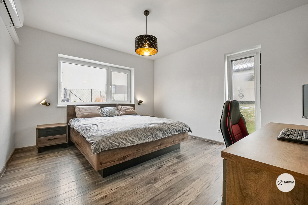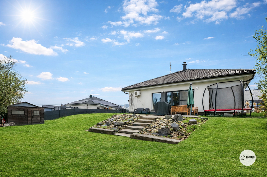 Hledáte moderní rodinný dům, kde se budete cítit opravdu doma hned od prvního kroku? Právě jste ho našli. Nabízíme k prodeji krásný bungalov v klidné části obce Rychvald na ulici Petřvaldská – místo, kde se snoubí pohodlí, soukromí a skvělá dostupnost. Jedná se o novostavbu z roku 2021 s dispozicí 4+kk a užitnou plochou 109 m². Dům je navržen s důrazem na prostor, světlo a funkčnost. Hlavní dominantou je velkorysý obývací pokoj propojený s kuchyní o téměř 60 m², který tvoří srdce celého domu. Moderní kuchyňská linka s vestavěnými spotřebiči, velký jídelní stůl i prostor pro pohodlnou sedací soupravu – tady budete rádi trávit čas s rodinou i přáteli. Dále zde najdete dva samostatné pokoje, prostornou ložnici s vlastní koupelnou a WC, druhou koupelnu, šatnu a velkou vestavěnou skříň, která poskytuje dostatek úložného prostoru pro pohodlné rodinné bydlení. O maximální komfort po celý rok se stará teplovodní podlahové topení napojené na elektrický kotel a klimatizace ve všech místnostech, včetně jednotky v obývacím prostoru s kuchyní. V létě chladí, v zimě příjemně temperuje. Pozemek o velikosti 773 m² je kompletně oplocený a nabízí ideální kombinaci relaxu a praktičnosti. Najdete zde terasu pro letní posezení, zahradní domek, okrasnou skalku i kryté parkovací stání. Rychvald je vyhledávaná lokalita pro klidné rodinné bydlení – bezpečné prostředí, kompletní občanská vybavenost a rychlá dostupnost do Ostravy i okolních měst z něj dělají místo, kde se žije opravdu dobře. Pokud hledáte dům, kam se můžete rovnou nastěhovat bez dalších investic, tohle je nabídka, kterou byste si neměli nechat ujít. Zavolejte nám, rádi vám dům osobně ukážeme nebo vás jím provedeme online. S financováním vám navíc zdarma pomůže náš hypoteční specialista.