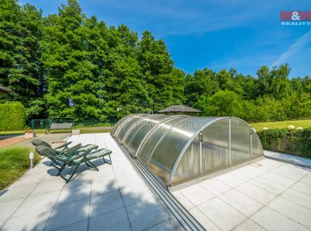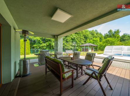 Nabízíme k prodeji komfortní rodinný dům 5+kk s garáží. Dům splní požadavky i náročnějších klientů hledajících pohodlné bydlení v klidné lokalitě. V přízemí se nacházejí dvě místnosti vhodné jako dětský pokoj s šatnou, pracovna či pokoj pro hosty, koupelna s vanou i sprchovým koutem. Velkorysý obývací pokoj je propojen s kuchyní a jídelním koutem, nechybí krb ani přímý vstup na terasu s výhledem do zahrady. Horní patro nabízí ložnici se šatnou, pokoj a koupelnu s prádelnou. Klimatizace zajišťuje příjemné prostředí i v horkých dnech. Prostorná zahrada nabízí klid k relaxaci u bazénu nebo dovádění s dětmi, dále je zde zahradní domek k uložení všeho potřebného. Dům je vytápěn plynovým kotlem s podlahovým topením. Tento dům je ideální volbou pro rodiny hledající moderní a funkční domov s dostatkem prostoru uvnitř i venku. Klidné okolí, pohodlný přístup a kvalitní vybavení – to vše tvoří výjimečnou nabídku.