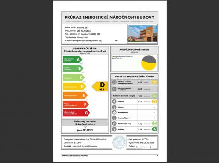 Dovolte mi Vám nabídnout ke koupi bytový dům o pěti bytových jednotkách v centru města Sadská. Dům se nachází pár desítek metrů od náměstí a stojí na pozemku o rozloze 588 m2 zahrada, kde je možno parkovat. Původně je dům z padesátých let minulého století, ale v roce 2010 prošel celkovou rekonstrukcí a nyní je tak k nastěhování bez investic. Všechny bytové jednotky jsou také po rekonstrukci a jsou vybaveny kuchyňskou linkou. V přízemí je bytová jednotka 2+1 o ploše 69. V 1.NP a 2.NP jsou vždy dvě bytové jednotky jednotka o dispozici 2+1 s balkónem o celkové ploše 72 m2 a bytová jednotka o dispozici 1+1 s pavlačí o celkové ploše 42 m2. Jednotlivé byty mají své měřiče energií. Některé byty jsou trvale pronajaty. Dům je vytápěn tepelným čerpadlem, fasáda je zateplena a všechny okna i dveře jsou plastová. Dům je tak Energicky nenáročný. PENB je v přípravě, proto je dočasně vyznačena třída G. Jedná se o dobrou investici pro ty, co hledají dům bez investic, na dobré adrese a s okamžitým výnosem z nájmů. Doporučuji osobní prohlídku.