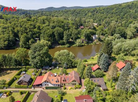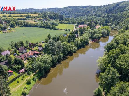 Exkluzivně nabízíme krásný rodinný dům umístěný uprostřed přírody, na malebném tichém místě, přímo u řeky Sázavy v obci Samopše. Dispozice zatepleného zděného domu je rozložena do dvou podlaží a má celkovou užitnou plochu 141 m2. Dominantou přízemí domu je velkorysý světlý obytný prostor (o celkové výměře 42,9 m2) s krbem s rohovou krbovou vložkou a okny na všechny světové strany. Z obývacího pokoje je vstup na terasu s výhledem na řeku, zahradu se vzrostlými dřevinami a okolí plné zeleně. Dále je v přízemí domu pracovna, koupelna, samostatné WC, vstupní hala, chodba a technická místnost. V patře domu jsou tři velké pokoje (20 m2, 19 m2 a 18 m2), šatna, koupelna s WC, chodba a balkon ze kterého je kouzelný výhled na řeku a do okolí. Dům byl zkolaudován v roce 2007. Zdivo je Porotherm se zateplením, okna jsou dřevěná s izolačními dvojskly, krytina je pálená taška, na podlaze je v přízemí kvalitní keramická dlažba, v patře laminátová plovoucí podlaha. V domě je zabezpečovací zařízení s možností napojení na PCO. Vytápění je pomocí krbové vložky a průduchy do pokojů v patře, v jídelně je elektrické podlahové topení a jako záložní zdroj slouží elektrické přímotopy. Odpady jsou svedeny do jímky. Voda je z vlastního vrtu – hloubka 23 m. Parkování je možné na venkovním parkovacím stání u domu. Na pozemku je postaven zahradní domek. Kompletní občanskou vybavenost poskytuje nedaleké město Sázava dostupné jednu zastávku vlakem nebo 15 minut autem. Vlaková stanice je v pěší vzdálenosti od domu. Dostupnost do Prahy autem 50 minut, vlakem přes Čerčany nebo autobusy ze Sázavy. Nabízená nemovitost je ideální pro rekreaci i trvalé rodinné bydlení v naprosto zdravém prostředí dostatečně daleko od dálnice a rychlostních komunikací.