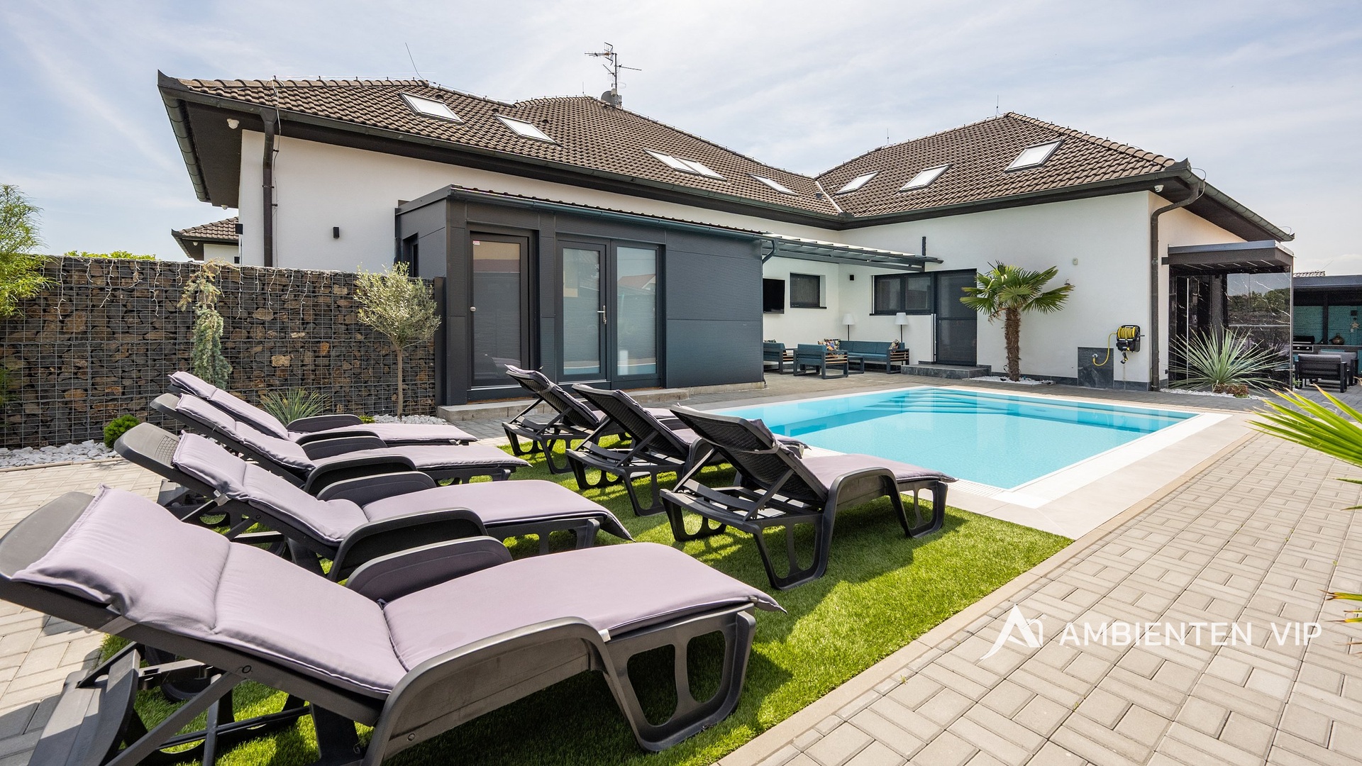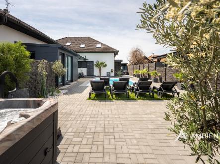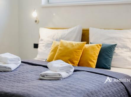 AMBIENTEN VIP exkluzivně nabízí výjimečnou příležitost, a to prodej 4 bytových jednotek v obci Šanov na jižní Moravě s provozovaným ubytováním, rozsáhlým wellness zázemím a moderními technologiemi. Objekt o celkové užitné ploše 248 m² se nachází na pozemku o velikosti 474 m². Bytové jednotky lze pronajmout na dlouhodobý i krátkodobý pronájem se zajímavým výnosem. Tato nemovitost představuje mimořádnou příležitost pro klienty hledající prostory pořádání firemních večírků, workshopy, strategická setkání či vzdělávací akce pro své zaměstnance i obchodní partnery. Díky své dispozici, vysokému standardu a zázemí byty zaujmou i nejnáročnější klienty. Ubytovací část tvoří čtyři samostatné byty s celkovou kapacitou až 20 hostů. Tři z jednotek jsou o dispozici 3+kk (výměry jsou 54,00 m², 54,00 m² a 80,11 m²) , čtvrtá o dispozici 1+kk a výměře 26,88 m². Každý byt disponuje plně vybavenou kuchyní, koupelnou, klimatizací a zatemňovacími venkovními žaluziemi. Všechny místnosti mají samostatný termostat pro regulaci teploty, vytápění je zajištěno teplovodním podlahovým topením a ohřev vody zajišťují elektrické bojlery (každá jednotka má vlastní se zásobníkem 125 L). Každý byt má své podružné měřidlo elektřiny i vody, nemovitost má jednu hlavní přípojku elektřiny a vody. K bytům patří dvě venkovní kuchyně a dvě vířivky – jedna pro 1+kk a druhá sdílená pro zbývající byty. U bytů je rovněž příprava pro případné doplnění sauny. Součástí této části nemovitosti je samostatný bazén o rozměru 6,5 × 4 metry. Celý prostor lze zakódovat pomocí zabezpečovacího systému Jablotron a chráněn je také kamerovým dohledem. V každém detailu je patrné, že nemovitost byla navržena s důrazem na funkčnost a komfort. Parkování pro 3-4 osobní automobily je přímo před pozemkem. Šanov je výchozím bodem pro vinařskou turistiku, cyklostezky i návštěvu Lednicko-valtického areálu. V obci se nachází železniční stanice. Zaujala vás tato výjimečná nemovitost? Kontaktujte nás pro více informací či prohlídku.