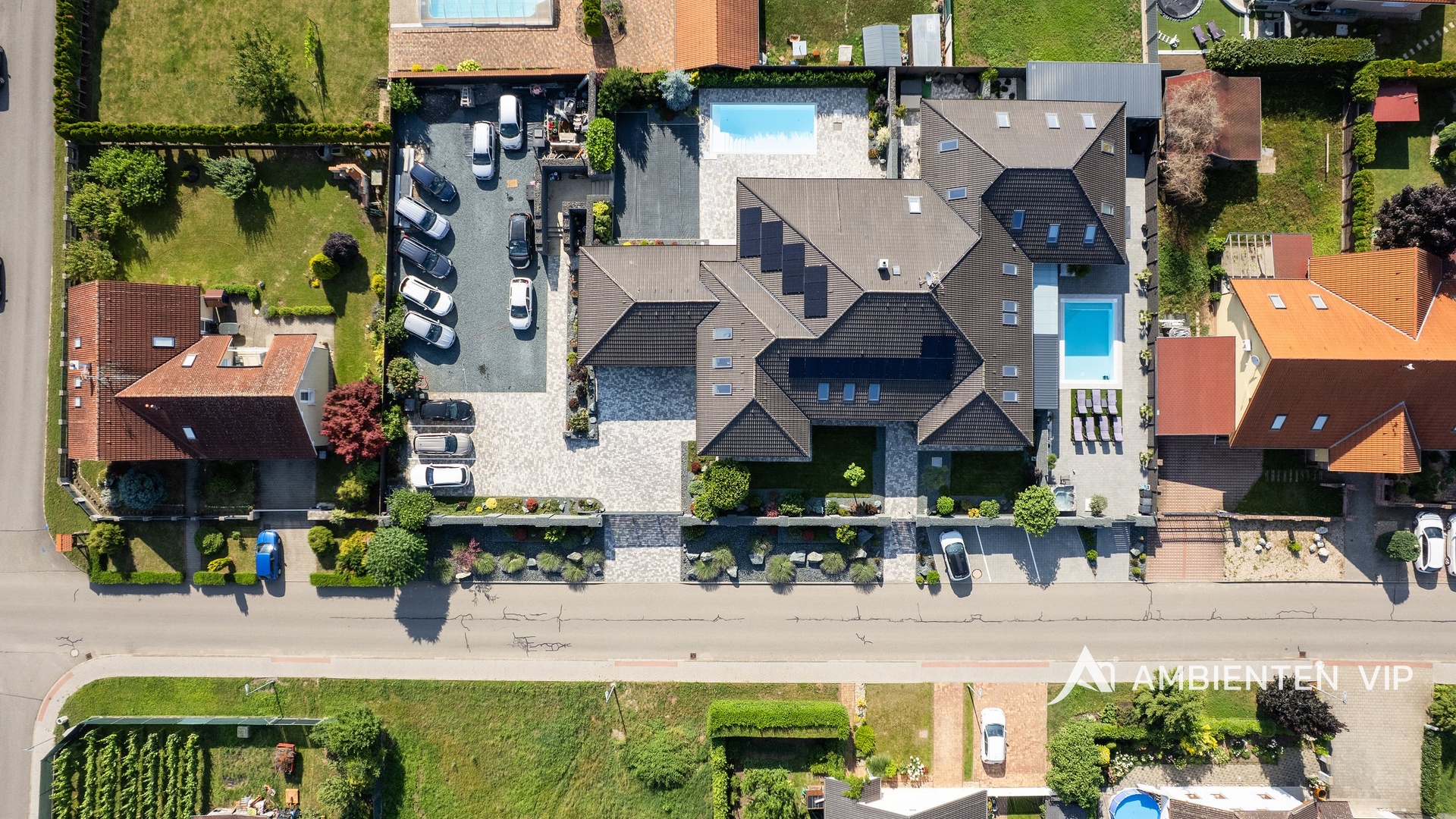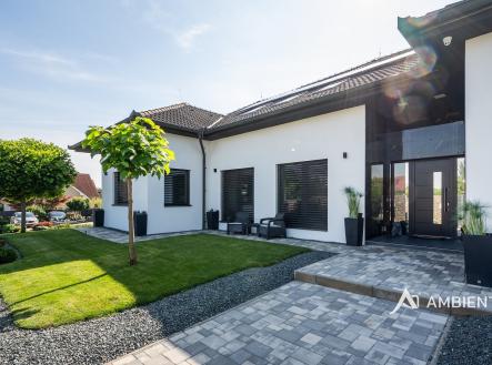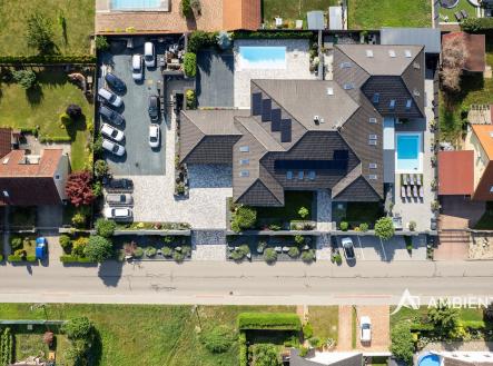AMBIENTEN VIP exkluzivně nabízí výjimečnou víceúčelovou luxusní vilu v obci Šanov na jižní Moravě s provozovaným ubytováním, rozsáhlým wellness zázemím a moderními technologiemi. Objekt o celkové užitné ploše 974 m² se nachází na pozemku o velikosti 2 035 m². Tato nemovitost představuje mimořádnou příležitost pro klienty hledající prostorné bydlení spojené s podnikáním. Díky své dispozici, vysokému standardu a zázemí může zároveň sloužit jako reprezentativní sídlo pro investiční nebo poradenské skupiny, které zde mohou pořádat firemní večírky, workshopy, strategická setkání či vzdělávací akce pro své zaměstnance i obchodní partnery. Dispozičně je nemovitost rozdělena na dvě hlavní části – rodinnou a ubytovací. Rodinná část o dispozici 5+kk disponuje nadstandardním obývacím prostorem s jídelnou a kuchyní o velikosti 172 m². Dále se zde nachází čtyři samostatné ložnice, šatny, dvě koupelny a v případě potřeby lze dispozici rozšířit až na 7+kk. Nechybí ani prostorná garáž o velikosti 57 m² a vlastní pozemek umožňující parkování několika desítek vozidel. Pro rodinný dům je k dispozici také venkovní kuchyně, ke které náleží plynový gril. Předností je i soukromý bazén se slanou vodou o velikosti 8 × 4 metry. Dům je napojen na samostatné podružné měřidlo elektřiny a vody a jeho vytápění zajišťuje tepelné čerpadlo (vzduch/voda) a dva elektrické bojlery – samostatné pro vytápění a ohřev TUV. Dům má teplovodní podlahové vytápění. Celý prostor lze zakódovat pomocí zabezpečovacího systému Jablotron a chráněn je také kamerovým dohledem. Ubytovací část tvoří čtyři samostatné byty s celkovou kapacitou až 20 hostů. Tři z jednotek jsou o dispozici 3+kk, čtvrtá o dispozici 1+kk. Každý byt disponuje plně vybavenou kuchyní, koupelnou, klimatizací a zatemňovacími venkovními žaluziemi. Všechny místnosti mají samostatný termostat pro regulaci teploty, vytápění je zajištěno teplovodním podlahovým topením a ohřev vody zajišťují elektrické bojlery (každá jednotka má vlastní se zásobníkem 125 L). K bytům patří dvě venkovní kuchyně a dvě vířivky – jedna pro 1+kk a druhá sdílená pro zbývající byty. U bytů je rovněž příprava pro případné doplnění sauny. Součástí této části nemovitosti je samostatný bazén o rozměru 6,5 × 4 metry. Každý byt má své podružné měřidlo elektřiny i vody, nemovitost má jednu hlavní přípojku elektřiny a vody. Celý objekt je napojen na fotovoltaickou elektrárnu o výkonu 10 kWh s možností rozšíření až o dalších 30 kWh. Přebytky elektřiny jsou uchovány v bateriích. V každém detailu je patrné, že nemovitost byla navržena s důrazem na funkčnost a komfort – od oddělených technických zón až po přípravu pro další využití prostor. Výhodou je možnost přístavby až šesti dalších bytů a vinného sklepa pro soukromé i komerční využití. Šanov je výchozím bodem pro vinařskou turistiku, cyklostezky i návštěvu Lednicko-valtického areálu. V obci se nachází železniční stanice. Zaujala vás tato výjimečná nemovitost? Kontaktujte nás pro více informací či prohlídku.