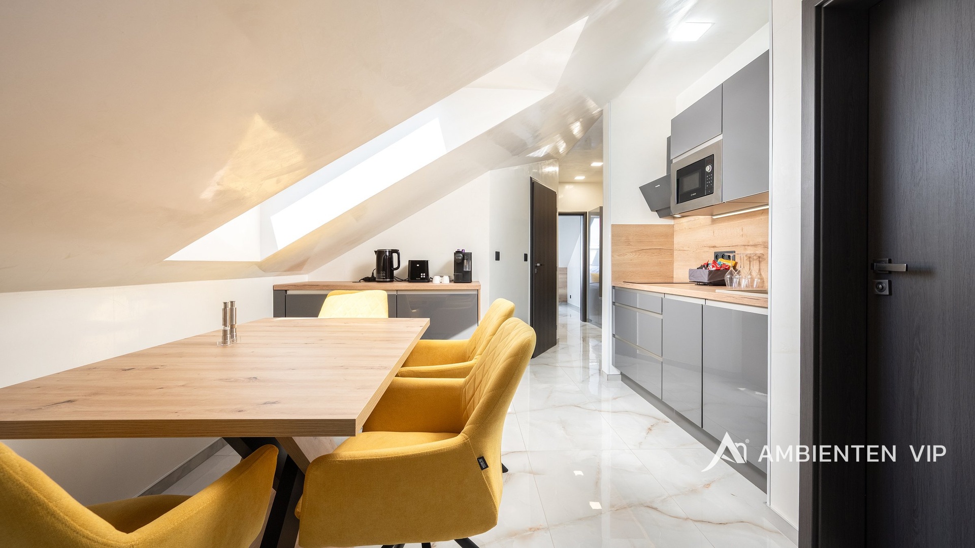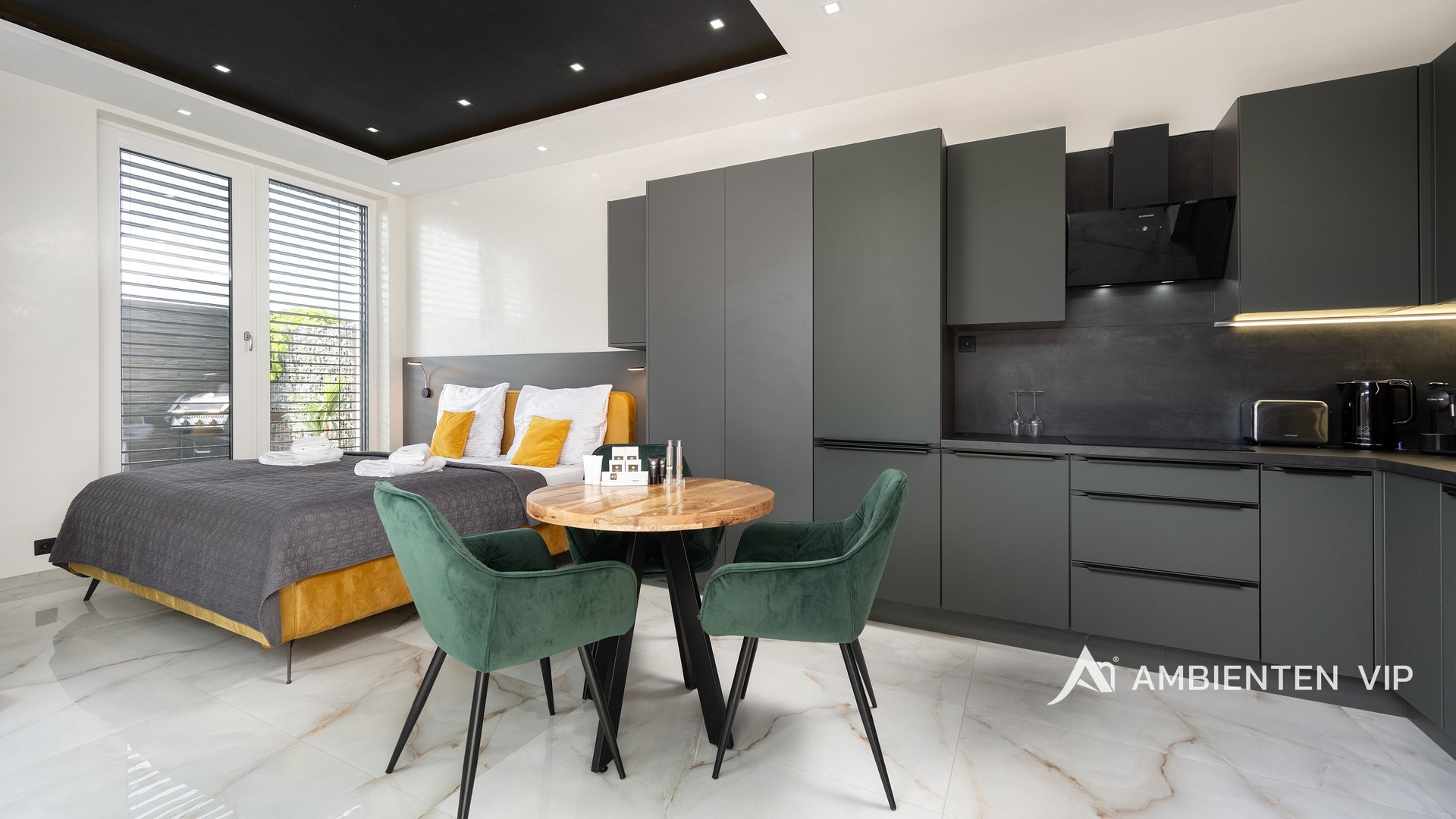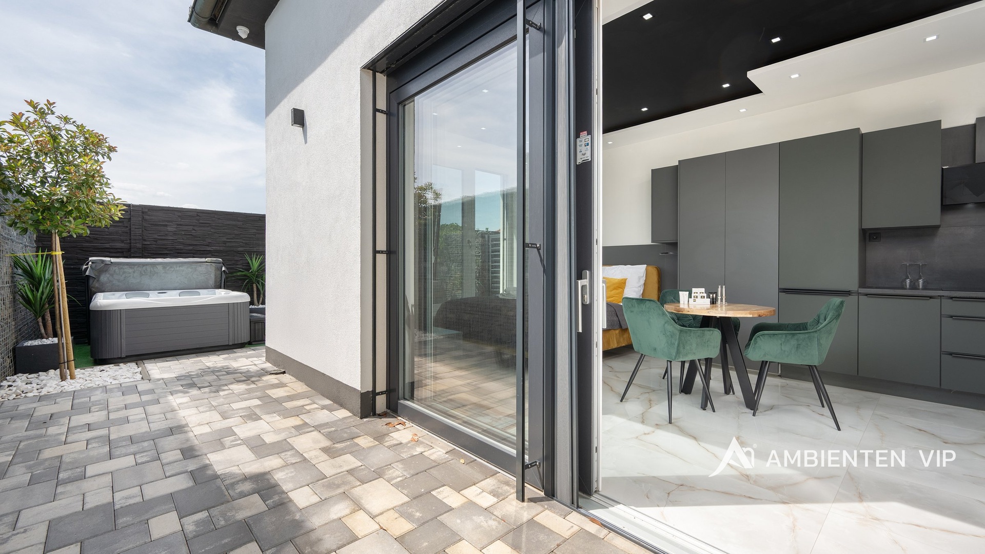 AMBIENTEN VIP exkluzivně nabízí výjimečnou příležitost, a to pronájem 4 apartmánů v obci Šanov na jižní Moravě s provozovaným krátkodobým ubytováním, rozsáhlým wellness zázemím a moderními technologiemi. Objekt o celkové užitné ploše 248 m² se nachází na pozemku o velikosti 474 m². Výhodou je, že apartmány mají stálou klientelu, která se každý rok vrací. Velkou výhodou je, že se nemovitost pronajímá kompletně vybavená. Ubytovací část tvoří čtyři samostatné apartmány s celkovou kapacitou až 20 hostů. Tři z jednotek jsou o dispozici 3+kk (výměry jsou 54,00 m², 54,00 m² a 80,11 m²) , čtvrtá o dispozici 1+kk a výměře 26,88 m². Jednotka 1+kk má soukromou terasu, grill a vířivku. Každý apartmán disponuje plně vybavenou kuchyní, koupelnou, klimatizací a zatemňovacími venkovními žaluziemi. Všechny místnosti mají samostatný termostat pro regulaci teploty, vytápění je zajištěno teplovodním podlahovým topením a ohřev vody zajišťují elektrické bojlery (každá jednotka má vlastní se zásobníkem 125 L). Každý byt má své podružné měřidlo elektřiny i vody, nemovitost má jednu hlavní přípojku elektřiny a vody. Návštěvníkům apartmánů je k dispozici venkovní kuchyně s grilem a další vířivka. Součástí nemovitosti je bazén o rozměru 6,5 × 4 metry s protiproudem. Celý prostor lze zakódovat pomocí zabezpečovacího systému Jablotron a chráněn je také kamerovým dohledem. V každém detailu je patrné, že nemovitost byla navržena s důrazem na funkčnost a komfort. Parkování pro 3-4 osobní automobily je přímo před pozemkem. Šanov je výchozím bodem pro vinařskou turistiku, cyklostezky i návštěvu Lednicko-valtického areálu. V obci se nachází železniční stanice. Nemovitost se nabízí i ke koupi. Zaujala vás tato výjimečná nemovitost? Kontaktujte nás pro více informací či prohlídku.