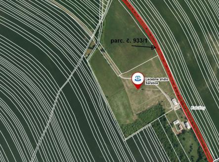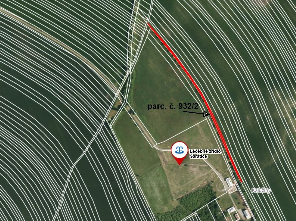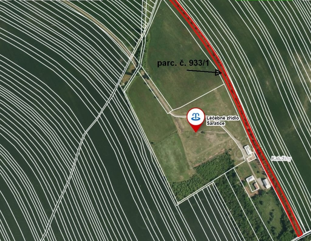 Jedná se o pozemky o celkové výměře 6 562 m2. Pozemky jsou rovinné a nacházejí se v okolí minerálního pramenu, léčebného zřídla, Šaratice. Pozemky netvoří celek, jsou různých výměr a nachází se na různých místech okolí nynějšího uzavřeného areálu zřídla. Pozemek p.č. 932/2 - Úzký pruh pozemku 747 m2 mezi zemědělsky obdělávanou půdou a pozemkem p.č. 933/1 při východním oplocením areálu zřídla. Pozemek p.č. 933/1 - Pruh pozemku 4688 m2 mezi zemědělsky obdělávanou půdou při východním oplocením areálu zřídla. Pozemek p.č. 941/2 - Úzký pruh pozemku 253 m2 mezi zemědělsky obdělávanou půdou a pozemkem p.č. 936, západně od nynějšího oplocení areálu zřídla. Pozemek p.č. 4379 - Pozemek 88 m2, charakteru orné půdy. Je užíván jako součást pastviny nebo pěstování píce na pozemku p.č. 937. Pozemek p.č. 4381 - Pozemek 48 m2, zřejmě součást původně vozové cesty, jeho západní hranice přiléhá k pozemkům zemědělsky obdělávané půdy. Pozemek p.č. 4430 - Úzký pozemek 513 m2, zřejmě součást původní vozové cesty, protíná účelovou přístupovou komunikaci k areálu zřídla. Pozemek p.č. 4432 - Pozemek 225 m2 tvoří součást účelové přístupové komunikace s nezpevněnou krajnicí k areálu zřídla v místě mezi pozemky p.č. 4433 a p.č. 4430. Téměř všechny pozemky jsou porostlé neudržovanými náletovými keři a dřevinami.