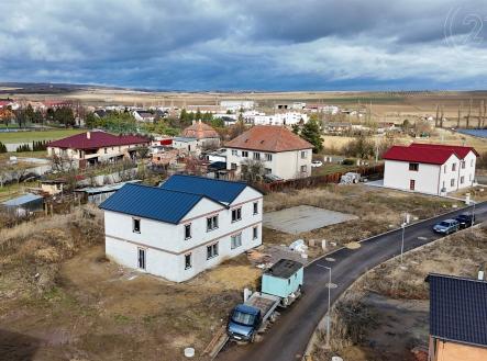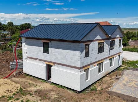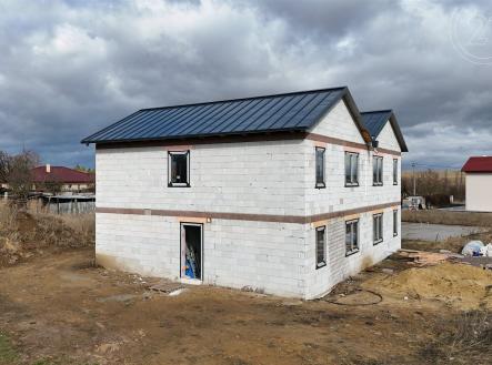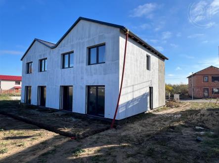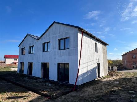 Nabízíme Vám ke koupi novostavbu dvoupodlažního rozestavěného rodinného domu, který je součásti dvojdomku, v obci Šatov o vnitřní užitné ploše 137 m² a dispozici 5+kk. Dům leží v nově vznikající lokalitě s kompletní infrastrukturou a na pozemku o celkové výměře 395 m². Při vstupu do domu se ocitneme v předsíni (4 m²) 1. podlaží, ze které navazuje chodba se schodištěm. Z chodby vstoupíme do pokoje (16,3m²), koupelny (8,84m²) a obývacího pokoje s kuchyní (36,6m²). Z obývacího pokoje je umožněn vstup na prostornou terasu se zahradou. Schodištěm se dostaneme do 2. podlaží, na kterém se nachází 3 pokoje (16,3 m² / 12,8 m² / 13,7 m²), koupelna s WC (10,2 m²), a šatna (4,6 m²). Vytápění domu a ohřev vody bude zajištěn tepelným čerpadlem vzduch voda. Městys Šatov leží zhruba 6 km jižně od Znojma. Jedná se o vinařskou obec ve Znojemské vinařské oblasti. Šatov současně leží v dosahu rakouské hranice. Především díky vinařství a historii zde nalezneme mnoho kulturního vyžití, městysem také prochází cyklostezky . Nachází se zde i bohatá občanská vybavenost vč. mateřské a základní školy (1. i 2. stupeň), obchody, zázemí pro sportovní vyžití. Pro více informací a případnou prohlídku domu mě neváhejte kontaktovat!