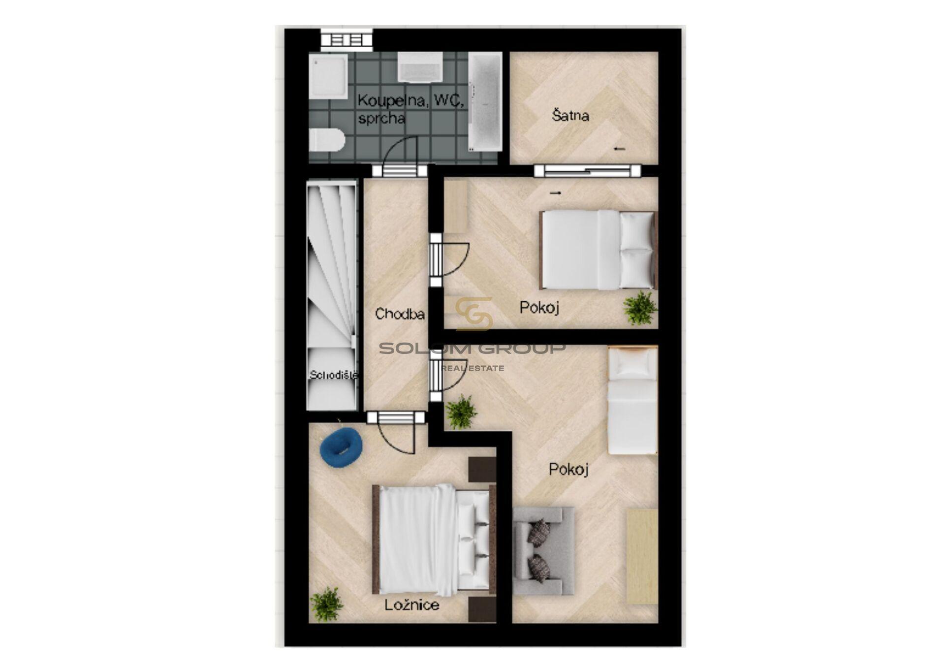 Prodej nízkoenergetického rodinného domu 5+kk / parkovací stání, bazén, tepelné čerpadlo, rekuperace, pozemek 415 m², který se nachází v obci Sedlec u Líbeznic, okr. Praha - východ. Přízemí domu: Prostorný obývací pokoj s kuchyňským koutem. Kuchyňská linka vč. vestavěných spotřebičů zn. Bosch: lednice s mrazákem, horkovzdušná trouba, el. varná deska, myčka, vestavný kávovar, digestoř. Z obývacího pokoje vstup na zahradu ze dvou stran. Technická místnost, vstup z kuchyně. 1x pokoj (pracovna/šatna) s přístupem na zahradu, samostatné WC, vstupní chodba s vestavnou skříní, dubové schodiště vedoucí do patra. 1. patro: chodba, tři neprůchozí pokoje (z toho jeden včetně praktické šatny). Koupelna s vanou, sprchovým koutem a WC. V celém domě podlahové vytápění a rekuperace s nastavitelnými výdechy v každé místnosti. Dřevěná okna s elektrickými předokenními roletami, dřevěné interiérové dveře, plovoucí podlahy a dlažba. Vytápění domu a ohřev vody zajištěno vlastním tepelným čerpadlem. Inženýrské sítě přivedeny – městská voda, elektřina a kanalizace. Energetická náročnost A. Vzhledem k použitým kvalitním materiálům i zateplení zděného domu jsou velkou výhodou nízké náklady na provoz. Nová střecha. K rodinnému domu přísluší pozemek o výměře 425 m², bazén s protiproudem a slanou vodou, parkovací stání, vjezdová vrata na el. pohon, zahradní závlahový systém. Zastávka BUS 150 m od domu. Výborná dopravní dostupnost 12 min. metro C, zast. Kobylisy nebo 25 min. metro C, zast. Letňany. Výstavba tramvajové trati vedoucí do centra, dokončení 2027. K nastěhování ihned.