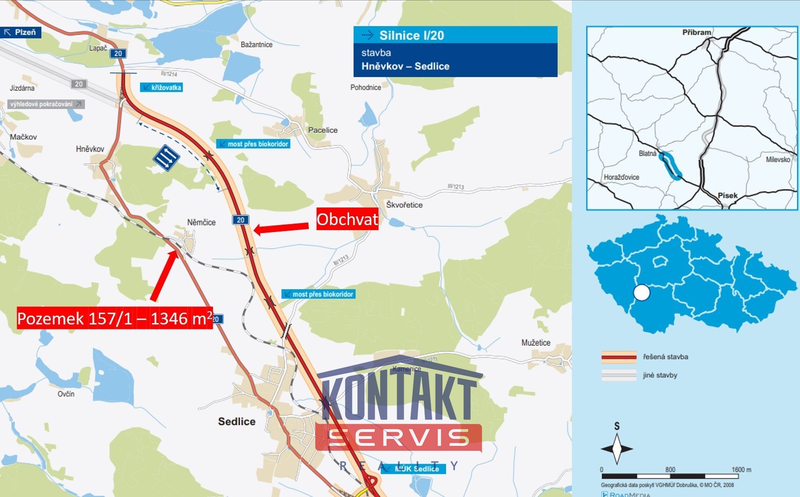 Nabízíme vám k prodeji stavební pozemek o rozloze 1 346 m² v obci Němčice u Sedlice, jen kousek od města Blatná v Jihočeském kraji. Pozemek je podle územního plánu součástí zastavitelné části obce, ideální pro výstavbu nízkopodlažních rodinných domů. Jihovýchodně orientovaný pozemek s mírně svažitým terénem poskytuje dostatek slunečního svitu po celý den. Příjezdová komunikace je asfaltová a zajišťuje pohodlný a bezproblémový přístup. Na pozemku je již zavedena elektřina, vodu lze řešit vrtem a odpad prostřednictvím vlastního septiku. Autobusová zastávka je pouhých 100 metrů od pozemku. Základní občanská vybavenost dostupná v nedaleké Sedlici. V dohledné době bude vybudován obchvat a pozemek se ocitne v absolutně klidné části obce. Klidná a příjemná lokalita obklopená přírodou, ideální pro rodinné bydlení či rekreaci. Tento pozemek představuje skvělou příležitost pro ty, kteří hledají harmonii mezi klidným venkovským prostředím a dobrou dostupností města. Vychutnejte si krásy jihočeské krajiny a vytvořte si domov podle svých představ. Pro bližší informace k nemovitosti kontaktujte prosím realitního makléře. Financování hypotečním úvěrem Vám zajistíme. Lokalita