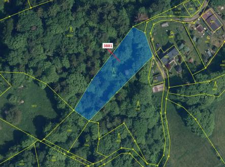 Lesní pozemek o výměře 1939 m2, parcelní číslo 3881, podíl 1/1, katastrální území Semily, obec Semily, obec s rozšířenou působností Semily, okres Semily, Liberecký kraj. Po těžbě.