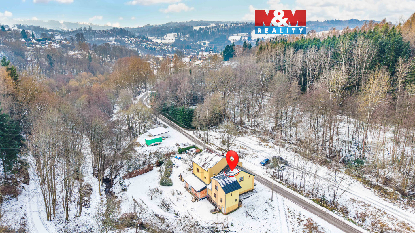 Nabízíme Vám k prodeji rodinný dům se dvěma samostatnými bytovými jednotkami o celkové dispozici 5+2. V přízemí domu se nachází vstupní chodba, betonové schodiště a také vstup do sklepa. V dolní bytové jednotce 3+1 najdete kuchyň, koupelnu s toaletou, obývací pokoj, ložnici a útulný pokoj, který lze využít například jako dětský či pracovnu. Místnosti jsou prostorné a příjemnou atmosféru, zejména v zimním období, vytvářejí krbová kamna. Byt 2+1 v prvním patře zahrnuje kuchyňský prostor, koupelnu s toaletou, obývací pokoj a dětský pokoj. K domu náleží pozemky o celkové výměře 510 m². Dům prošel poslední rekonstrukcí v roce 2007 a nachází se v dobrém technickém stavu. V okolí rodinného domu najdete krásnou přírodu, která nabízí příjemné procházky lesem a polosamotou. Zároveň nabízí výbornou dostupnost do centra města, což z něj činí ideální místo pro klidné rodinné bydlení. Tato nemovitost je i vhodnou investiční příležitostí k pronájmu. Domluvte si prohlídku, budeme se na vás těšit.