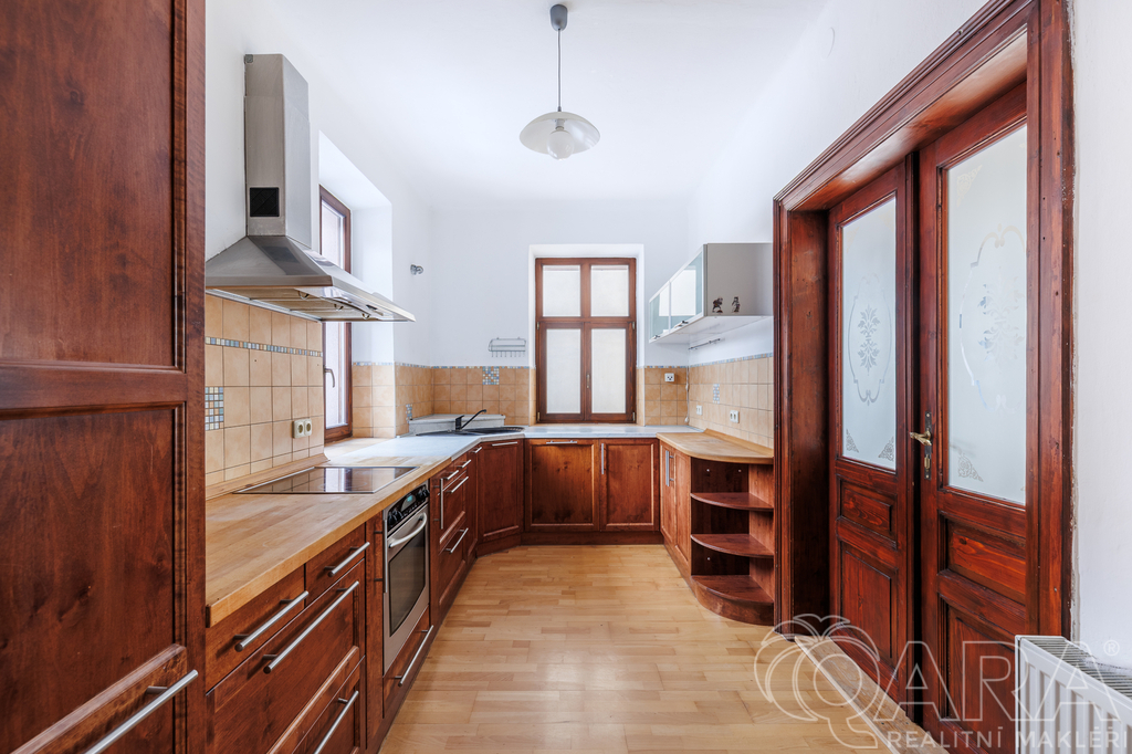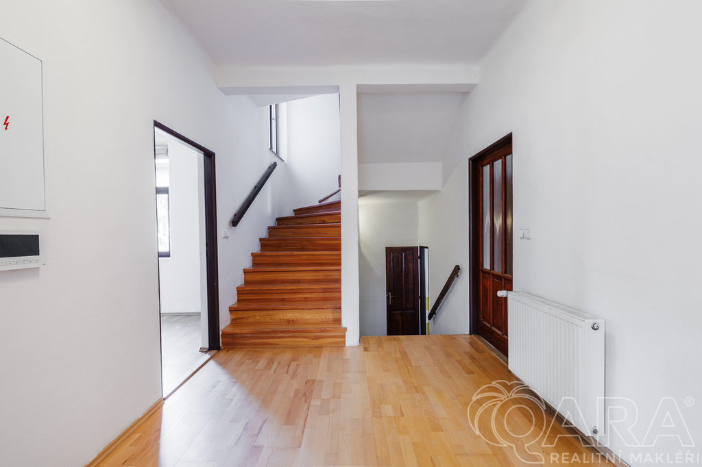 Nabízíme k prodeji prostorný, zateplený třípodlažní rodinný dům po kompletní rekonstrukci o užitné ploše 250 m², který se nachází na pozemku o velikosti 341 m². Dům je vhodný pro vícegenerační bydlení nebo lze jeho přízemí využít k podnikání, které umožňuje samostatný vstup i přímý přístup z ulice. Na pozemku jsou dvě nekrytá parkovací stání, u bočního vstupu do domu navíc osazená garážovými vraty. Dům má dřevěná okna s dvouskly a předokenní rolety. V přízemí se nacházejí tři místnosti a technická místnost, což umožňuje široké využití prostoru, ať k podnikání nebo bydlení. V technické místnosti je i sprchový kout. V jedné z místnosti se nacházejí kachlová kamna a v další je možnost mít menší kuchyňskou linku, ideální místo například pro ordinaci. V mezi patře (1NP / 2NP) je vstup na krytou terasu z modřínu. Druhé podlaží tvoří prostorná kuchyně a tři světlé pokoje (dispozice 3+1). Kuchyně disponuje vestavěnými spotřebiči. Kombinace tří pokojů je možné využít jako obývací pokoj / jídelnu / pracovnu (pokoj pro hosty). Na druhém patře je i koupelna s dvěmi umyvadly a prostorným sprchovým koutem. Třetí podlaží disponuje dvěma ložnicemi, kde každé ložnici patří šatna. Na patře jsou i dva úložné prostory, které přinášejí dostatek místa pro uskladnění i komfortního bydlení. Dále je zde vstup i na půdu, která je pochozí. V domě jsou celkem tři toalety a dvě koupelny, což zajišťuje pohodlí i pro početnější rodinu. Součástí pozemku je kaskádovitá zahrada s retenční nádrží a dřevníkem. Objekt má tři samostatné vstupy – dva z ulice a jeden z boční strany. Dům je také vybaven kamerovým systémem. Nemovitost se nachází v příjemné lokalitě s veškerou občanskou vybaveností v docházkové vzdálenosti a s výborným dopravním spojením. Díky kompletní rekonstrukci je dům připraven k okamžitému nastěhování bez nutnosti dalších investic.