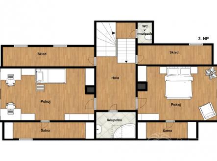 Nabízíme k prodeji prostorný, zateplený třípodlažní rodinný dům po kompletní rekonstrukci o užitné ploše 250 m², který se nachází na pozemku o velikosti 341 m². Dům je vhodný pro vícegenerační bydlení nebo lze jeho přízemí využít k podnikání, které umožňuje samostatný vstup i přímý přístup z ulice. Na pozemku jsou dvě nekrytá parkovací stání, u bočního vstupu do domu navíc osazená garážovými vraty. Dům má dřevěná okna s dvouskly a předokenní rolety do uliční části. Nemovitost nabízí i skvělý investiční potenciál pro menší developery - je zde možnost vytvořit samostatné bytové / nebytové jednotky. V přízemí se nacházejí tři místnosti a technická místnost, což umožňuje široké využití prostoru, ať k podnikání nebo bydlení. V technické místnosti je i sprchový kout. V jedné z místnosti se nacházejí kachlová kamna a v další je možnost mít menší kuchyňskou linku, ideální místo například pro ordinaci. V mezi patře (1NP / 2NP) je vstup na krytou terasu z modřínu. Druhé podlaží tvoří prostorná kuchyně a tři světlé pokoje (dispozice 3+1). Kuchyně disponuje vestavěnými spotřebiči. Kombinace tří pokojů je možné využít jako obývací pokoj / jídelnu / pracovnu (pokoj pro hosty). Na druhém patře je i koupelna s dvěmi umyvadly a prostorným sprchovým koutem. Třetí podlaží disponuje dvěma ložnicemi, kde každé ložnici patří šatna. Na patře jsou i dva úložné prostory, které přinášejí dostatek místa pro uskladnění i komfortního bydlení. Dále je zde vstup i na půdu, která je pochozí. V domě jsou celkem tři toalety a dvě koupelny, což zajišťuje pohodlí i pro početnější rodinu. Součástí pozemku je kaskádovitá zahrada s retenční nádrží a dřevníkem. Objekt má tři samostatné vstupy – dva z ulice a jeden z boční strany. Dům je také vybaven kamerovým systémem. Nemovitost se nachází v příjemné lokalitě s veškerou občanskou vybaveností v docházkové vzdálenosti a s výborným dopravním spojením. Díky kompletní rekonstrukci je dům připraven k okamžitému nastěhování bez nutnosti dalších investic.