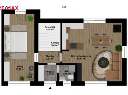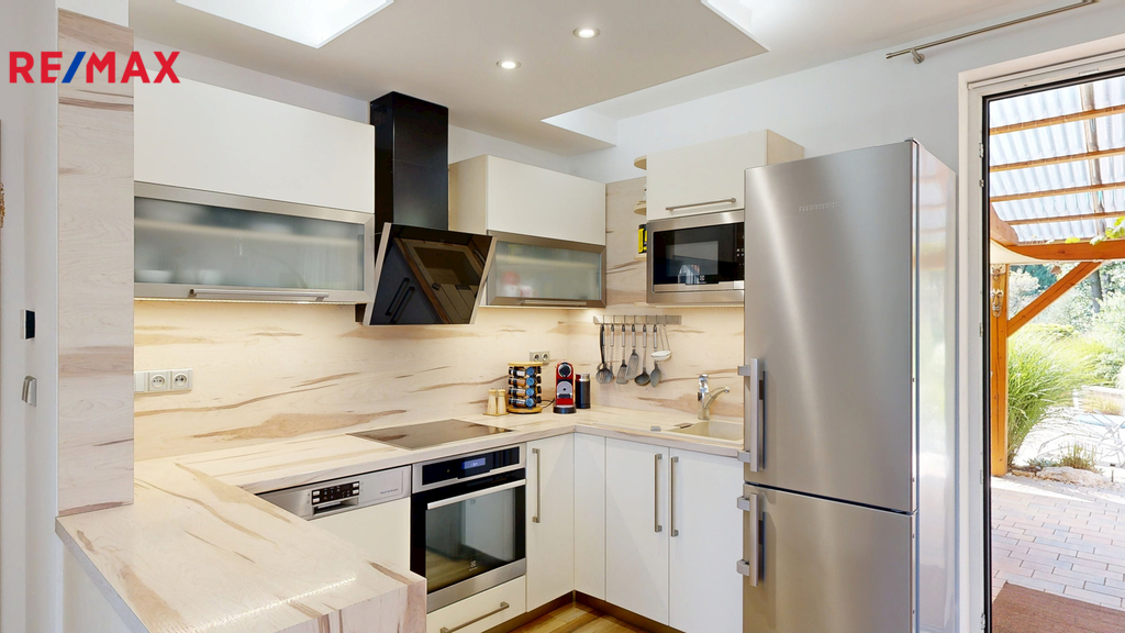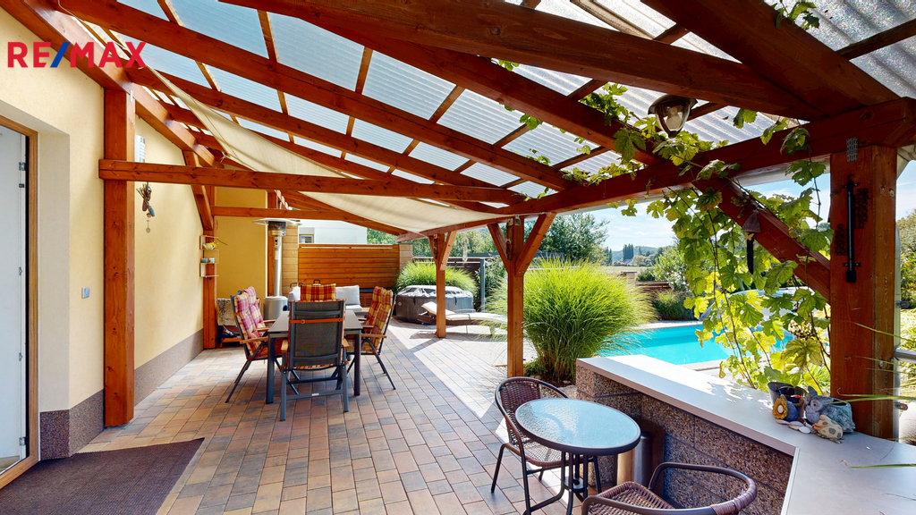 Ve výhradním zastoupení majitele nabízíme k prodeji novostavbu ( kolaudace 2017) krásného, polořadového, zděného RD 4+kk, v obci Šerkovice u Tišnova, okres Brno venkov. Dům se nachází v klidné, boční ulici, má UP 154 m2, pozemek 374 m2 a tvoří jej následující místnosti: 1NP: předsíň 2,7 m2, samostatné WC 2,1 m2, komora pod schody 3,4 m2, obývací pokoj , s kuchyňským koutem ( vybavený kuchyňskou linkou na míru, včetně kompletních spotřebičů ), krbem a vstupem na terasu 27 m2, pokoj 17 m2, se vstupem na zastřešenou terasu o výměře 42 m2 ( lze z ní vytvořit další pokoj o výměře cca 30 m2 ), chodba 2,6 m2, dřevěné schodiště do horního patra 2,6 m2. 2.NP: schodiště 5,1 m2, chodba 5,3 m2, koupena s WC 5,2 m2, ložnice 20 m2, pokoj 21 m2. Na okrasné zahradě o výměře 306 m2 se nachází krytý bazén Albixon z roku 2020, o objemu 32 m3 ( hloubka 1,2 m, rozměry 3,5 x 7,5 m), na níž navazuje další část zahrady o výměře 500 m2, která je v dlouhodobém pronájmu od obce. Dále se na pozemku nachází kryté parkovací místo na auto o výměře 20 m2 a 2 zahradní domky na nářadí. Vytápění domu zajišťuje elektrický kotel, s podlahovým vytápěním ve všech místnostech ( každá místnost má svůj samostatný termostat ) a krb, v obývacím pokoji. Celkově je nemovitost vyhotovená ve vyšším standardu ( vnitřní protihlukové dveře z dřevěného masivu, na podlahách italská granitová dlažba, kromě koupelny a chodby, kde je mramorová dlažba Novabel, speciálně určená pro podlahové topení. Pod schodištěm se nachází vlastní úpravna vody. Okna jsou 3 komorová, plastová, s protihlukovou úpravou a parozábranou, střešní jsou dřevěná, značky Vekra. Obec Šerkovice má základní občanskou vybavenost, zahrnující obchod se smíšeným zbožím, hospodu, outdoorové hřiště, včetně plochy pro hokej. Kompletní občanská vybavenost se nachází v okresním městě Tišnov, které je vzdálené pouhých 5 km. Průkaz energetické náročnosti budovy nebyl dodán, proto uvádíme energetickou třídu G. Nemovitost je vhodná pro všechny klienty, kteří hledají klidné bydlení, v nádherné přírodě, s dobrou dostupností do Brna. Uvolnění nemovitosti po dohodě.