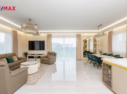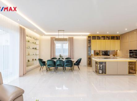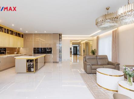 Reprezentativní, elegantní, stylová… a odvážně jiná. Přesně taková je tato novostavba moderního bungalovu z roku 2022. Dům 4+kk určený i pro velmi náročné klienty se nachází na pozemku o celkové rozloze 946 m2 a nabízí 217 m2 celkové užitné plochy. Z prostorné vstupní chodby se dostanete do centrálního prostoru, na který volně navazuje obývací pokoj s jídelnou a kuchyňským koutem, ložnice s koupelnou a technická místnost s prádelnou, v levé části domu se nachází dva samostatné pokoje a druhá koupelna. Obývací pokoj s kuchyňským koutem nabízí úctyhodných 72 m2 a díky velkým proskleným plochám orientovaným na tři světové strany nabízí dostatek světla a slunce po celý den. Interiér domu Vás okouzlí svou čistotou, vzdušností a smyslem pro detail. Je provedený ve vysoké kvalitě, v celém domě je teplovodní podlahové plynové vytápění, elektrické předokenní rolety, v hale a centrálním obytném prostoru jsou sádrokartonové podhledy s postranním osvětlením. Podlahy pokrývá italská dlažba, v ložnicích jsou příjemné elegantní koberce. Luxusní kuchyňská linka s pracovní deskou ze slinuté keramiky je osazena spotřebiči Bosch a varnou deskou s integrovaným odsavačem par Elica Nicola Tesla. V koupelnách se můžete těšit na kvalitní italskou velkoformátovou dlažbu i obklady, stejně tak jako vysoce kvalitní zařizovací předměty značky Villeroy & Boch, Roca a Hans Grohe. Dům se nachází v oblíbené a vyhledávané lokalitě na jihovýchodní hranici Prahy. V obci je základní občanská vybavenost, základní i mateřská škola, obchody, restaurace, sportoviště. Autobusové spojení na Černý most i vlakové nádraží Klánovice. Výborné spojení do Babic (Open Gate – 10 min.), Říčan (12 min.) či Průhonic (15 min.). Pokud Vás nabídka zaujala, budu se na Vás moc těšit na prohlídce. Tento dům za ni totiž rozhodně stojí.