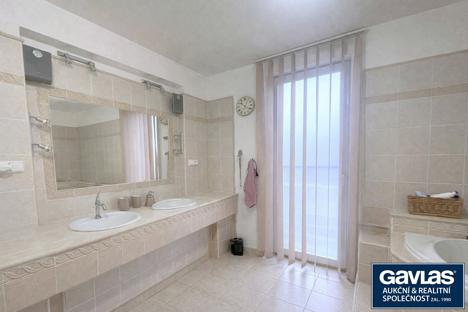 Hledáte výjimečné bydlení, které kombinuje velkorysý prostor, absolutní soukromí a relaxaci jako v pětihvězdičkovém hotelu? Tato reprezentativní vila v Šitbořicích (pouhých 25 km od Brna) nabízí přes 400 m² užitné plochy a unikátní koncept tří samostatných bytových jednotek. Hlavní přednosti nemovitosti: • Vnitřní bazén (38 m²) přímo navazující na obývací prostor. • Tři samostatné jednotky: Hlavní byt 4+kk a dva hostinské byty 2+1. • Zahrada snů: Koupací jezírko s filtrací, altán s udírnou a automatická závlaha. • Parkování: Kryté stání pro 4 vozy a prostorná dílna. • Lokalita: Klidná vinařská obec s kompletní občanskou vybaveností a rychlým spojením do Brna. Dispozice a interiér Dům s půdorysem do tvaru "L" byl navržen tak, aby poskytoval maximální komfort a soukromí všem obyvatelům. • Hlavní rezidence (4+kk, 220 m²): Dominantou je prosvětlený obývací pokoj s krbem a jídelní částí. Skutečným unikátem je přímý vstup k vnitřnímu bazénu 38m², který umožňuje celoroční relaxaci. Celý prostor je klimatizován. • Hostinský byt B (2+1, 79 m²): Klimatizovaný apartmán s vlastní terasou (19 m²) nabízí ideální prostor pro návštěvy nebo odrostlé děti. • Hostinský byt C (2+1, 76 m²): Bezbariérový přístup se vstupem přímo do zahrady je ideální pro seniory nebo jako zázemí pro hosty. Díky třem samostatným vstupům je vila perfektní volbou pro vícegenerační rodinu nebo kombinaci luxusního bydlení a podnikání (krátkodobé pronájmy, kanceláře). Zahrada: Vaše soukromá oáza Pozemek o rozloze 1 217 m² je promyšlen do posledního detailu. Mírně svažitý terén zajišťuje hezké výhledy a naprosté soukromí díky kompletnímu oplocení. • Koupací jezírko: Přírodní alternativa k bazénu pro osvěžení v horkých dnech. • Venkovní posezení: Zahradní altán s uzenářskou udírnou je stvořen pro letní grilování a setkávání s přáteli. • Péče bez námahy: O zeleň se stará automatický zavlažovací systém. Technické informace a stav Vila z roku 2002 prošla rekonstrukcí a nevyžaduje žádné zásadní investice. • Sítě: Elektřina, plyn, obecní vodovod, obecní kanalizace • Zabezpečení: Centrální zabezpečovací systém pro váš klid. • Vytápění: Efektivní plynové kotle. Lokalita: Šitbořice Obec s bohatou historií a vinařskou tradicí nabízí vše, co k modernímu životu potřebujete: školy, lékaře, sportovní halu i vyhlášený léčivý pramen Štengar. Skvělá dostupnost do Brna (21 minut jízdy) činí z této lokality prestižní adresu pro klidný život s městem na dosah. Přijeďte se přesvědčit o jedinečné atmosféře tohoto domu.