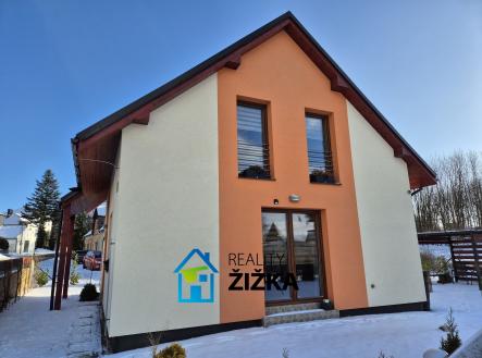 Ve výhradním zastoupení nabízíme prodej novostavby rodinného domu 4+kk v malebné obci Sklené (Svitavy 6 km, Moravská Třebová 19 km). Celková plocha parcely činní 437 m2, zastavěná plocha 76 m2 a zahrada 361 m2, čistě podlahová plocha domu 105,8 m2. Dispozice: 1 NP – Obývací pokoj s jídelnou 27,1 m2, kuchyň s vybavenou kuchyňskou linkou 10,2 m2, zádveří 3,1 m2, chodba 3,9 m2, hala 3,7 m2, spíž 1,8 m2, WC s umyvadlem 1,9 m2. 2 NP – Chodba 6,4 m2, koupelna se sprchovým koutem a WC 7,1 m2, tři ložnice 12,5 m2, 12,1 m2 a 10,6 m2. Rodinný dům je kolaudovaný v roce 2023, vysoce energeticky nenáročný a štítek energetické náročnosti je označen „B“ (velmi úsporné). Okna jsou plastová (trojskla), podlahy plovoucí + dlažba, vytápění je řešeno přes tepelné čerpadlo (ohřev vody do topných těles), lze využít i krbové kamna. Nemovitost lze financovat i hypotečním úvěrem, který Vám zdarma zprostředkujeme u financujícího partnera. Podrobnější informace rád zodpovím a prohlídku domu po domluvě zajistím.