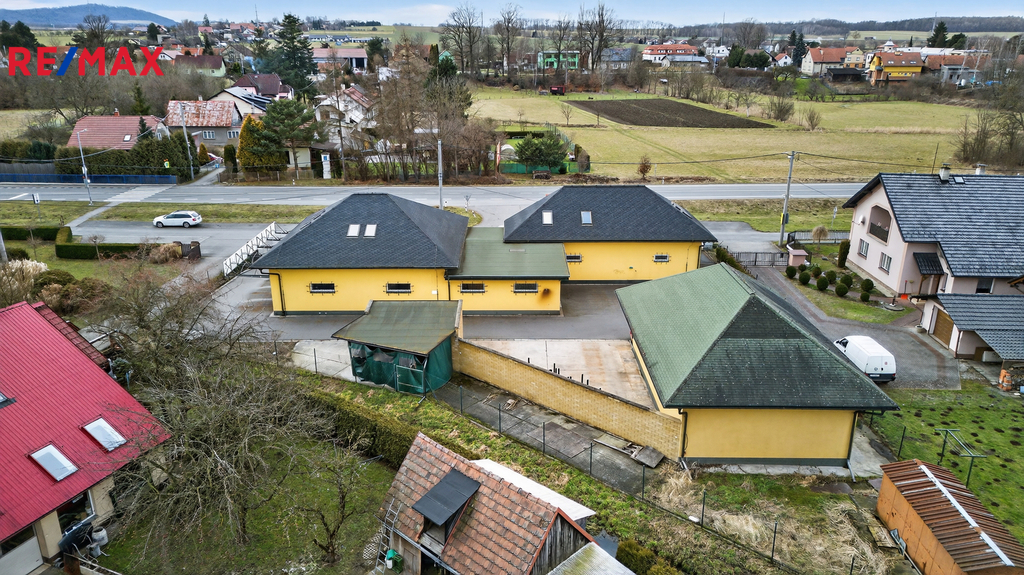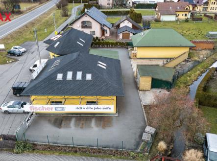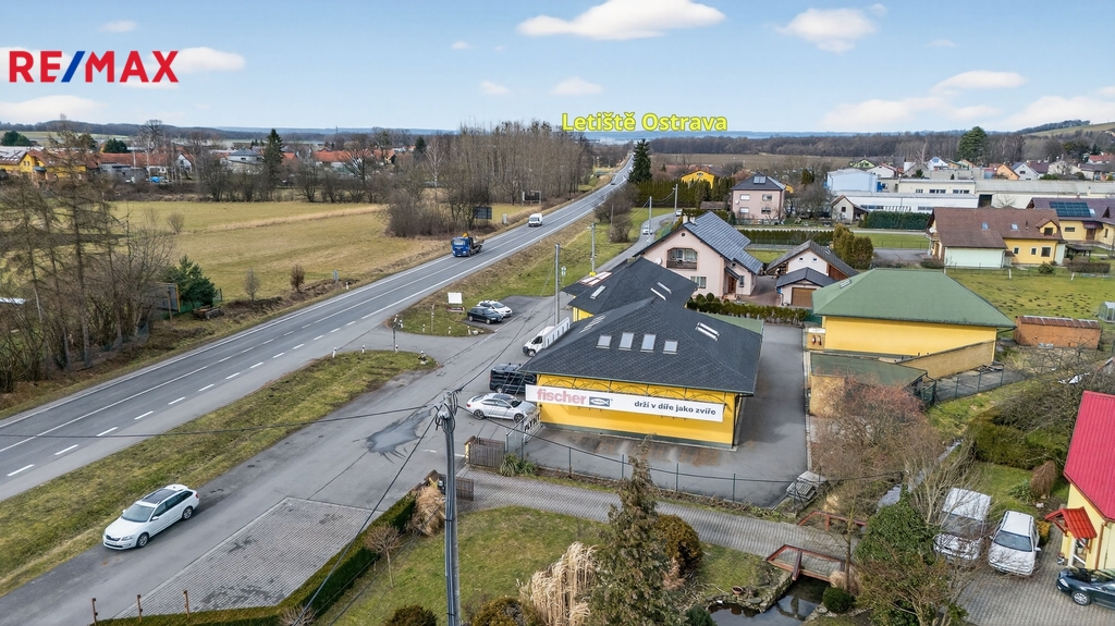 Nabízíme k prodeji komerční areál ve Skotnici s velmi dobrým dopravním napojením, situovaný u hlavní komunikace. Nemovitost tvoří uzavřený celek vhodný pro obchodní činnost, sídlo firmy, showroom se skladem nebo kombinaci podnikání a administrativy. Hlavní provozní budova je rozdělena na dvě obchodní části a doplněna o skladové prostory, sociální zázemí a technické místnosti. V podkroví se nachází kanceláře a další sklad. Objekt je zděný, zateplený a v dobrém technickém stavu. V areálu se dále nachází samostatná zděná budova skladu/garáže s využitým podkrovím, vhodná pro skladování, dílnu nebo lehkou výrobu. K dispozici jsou zpevněné plochy a parkování na vlastních pozemcích. Zastavěná plocha hlavní budovy činí 348 m², samostatný sklad má zastavěnou plochu 100 m². Celková výměra pozemku je 2.191 m². Vytápění hlavní budovy je řešeno ústředním teplovodním topením s plynovým kotlem, přičemž v jedné z prodejen je podlahové vytápění a ve zbytku objektu radiátory. Objekt je napojen na veškeré inženýrské sítě – elektřinu, veřejný vodovod, kanalizaci i plyn. Samostatný sklad je napojen na elektřinu a není vytápěn. Areál je přístupný z veřejné komunikace a nabízí dostatek prostoru pro parkování zákazníků i zaměstnanců. V blízkosti se nachází letiště Ostrava (5km), Ostrava (20 km) a je možnost napojení na dálnici. Dle územního plánu se nemovitost nachází v ploše SV – smíšené obytné venkovské, která umožňuje kombinaci bydlení a podnikání lokálního charakteru. V těchto plochách je přípustné bydlení v rodinných domech, stavby a provozy související s bydlením, občanská vybavenost a menší komerční provozovny (např. maloobchod, služby, administrativa, ubytování či stravování). Přípustné jsou také stavby pro podnikatelské aktivity místního významu. Možné je umístění skladů, zázemí, garáží, parkovacích ploch, technické infrastruktury a dalších staveb souvisejících s provozem areálu. Pro více informací a domluvení prohlídky kontaktujte makléře nabídky.